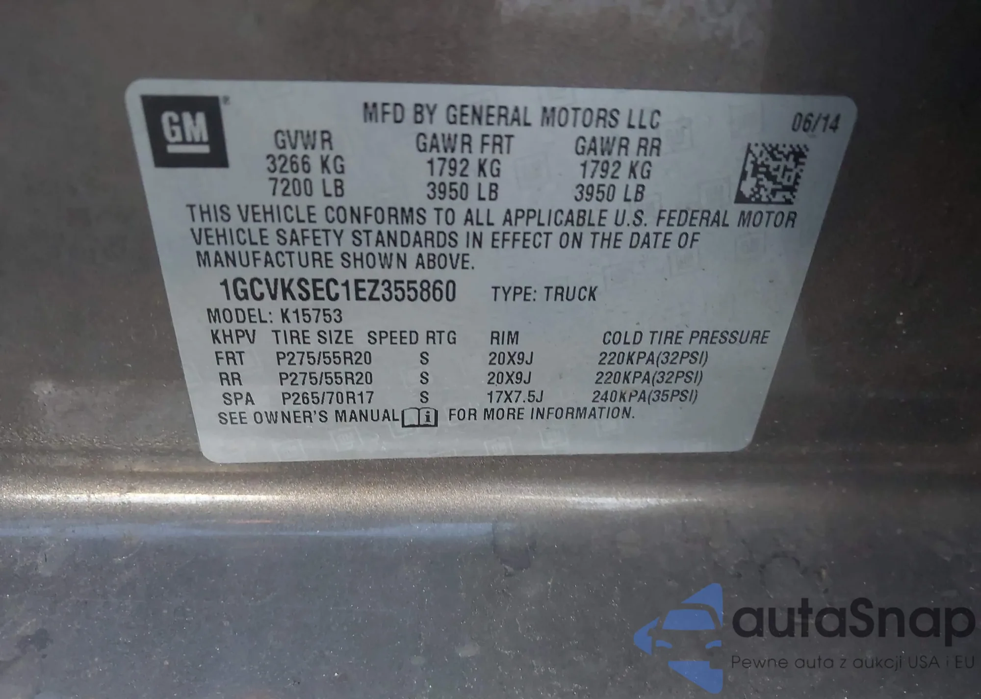 • VIN: 1GCVKSEC1EZ355860