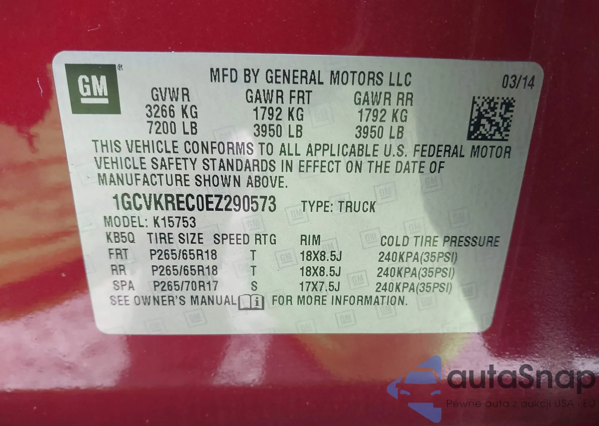 VIN: 1GCVKREC0EZ290573