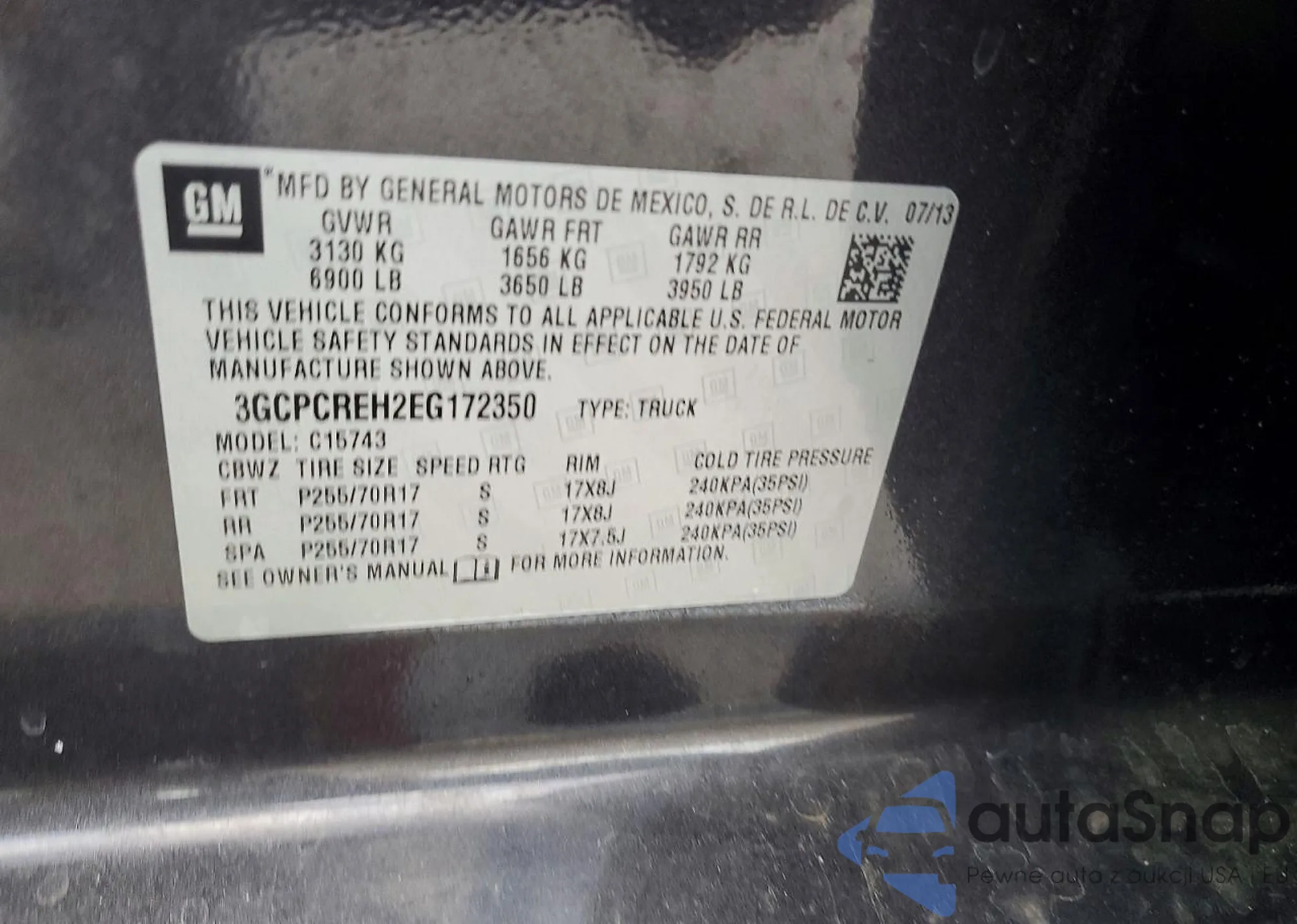 • VIN: 3GCPCREH2EG172350