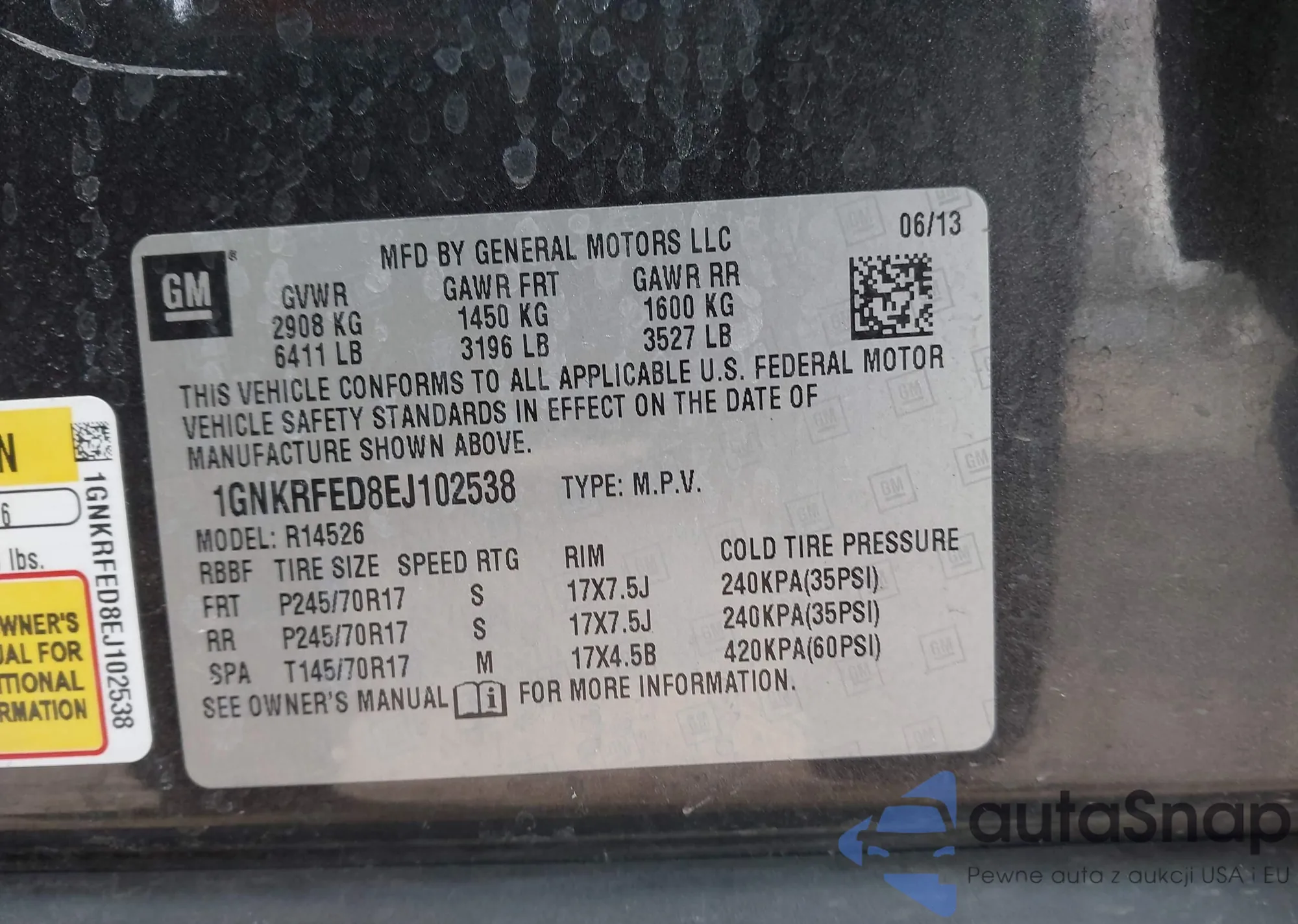 Автомобиль Chevrolet Traverse 2014 (VIN 1GNKRFED8EJ102538) ранее не участвовал в торгах. Документы чистые, пробег соответствует или ниже среднего по рынку. Продаётся страховой компанией — рекомендуем покупку. Доставка в порт займет около 6–8 недель.