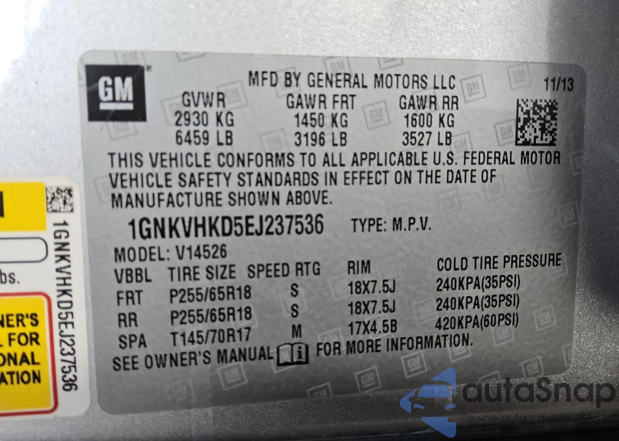 VIN: 1GNKVHKD5EJ237536