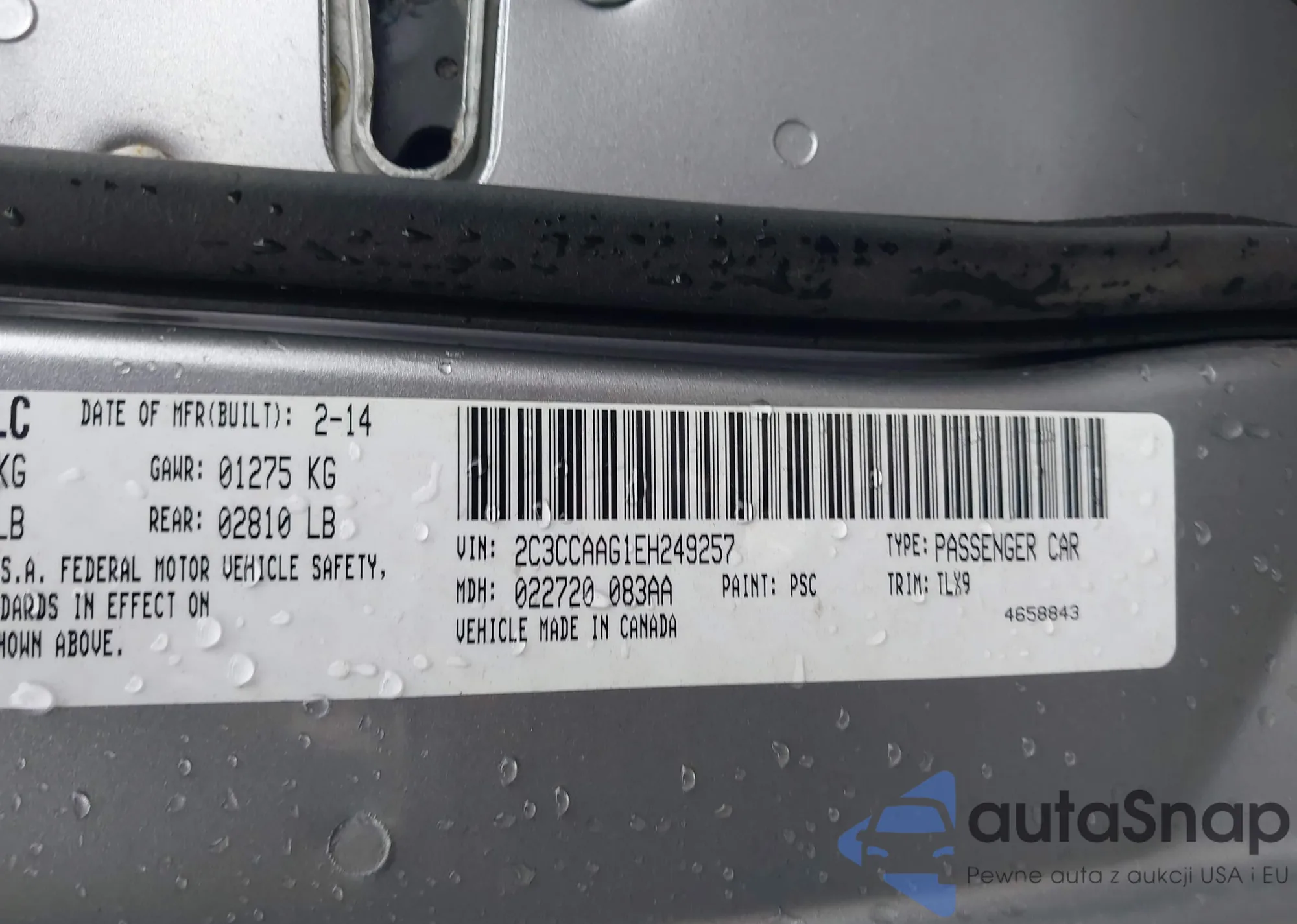 • VIN: 2C3CCAAG1EH249257