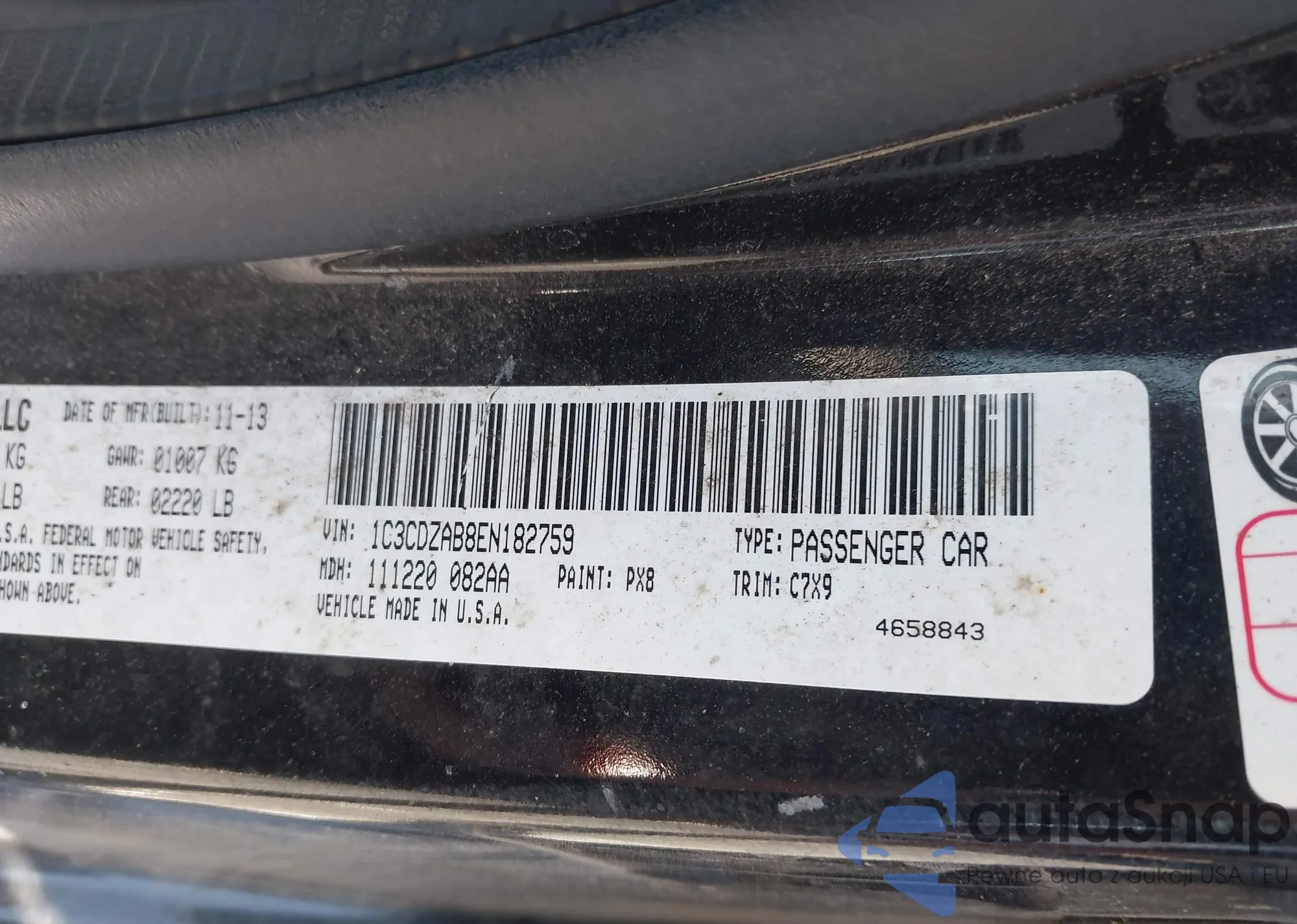 VIN: 1C3CDZAB8EN182759