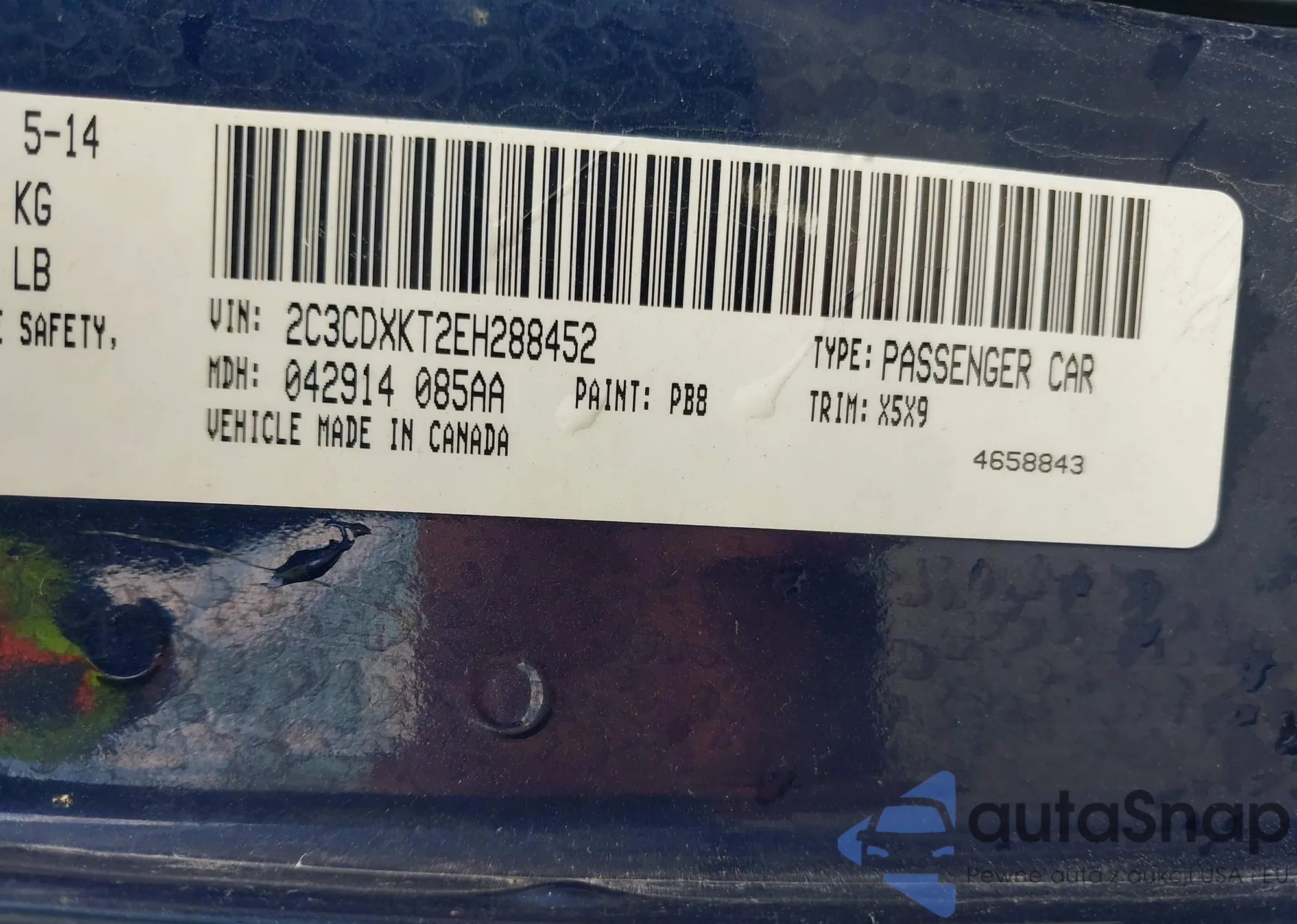 • VIN: 2C3CDXKT2EH288452