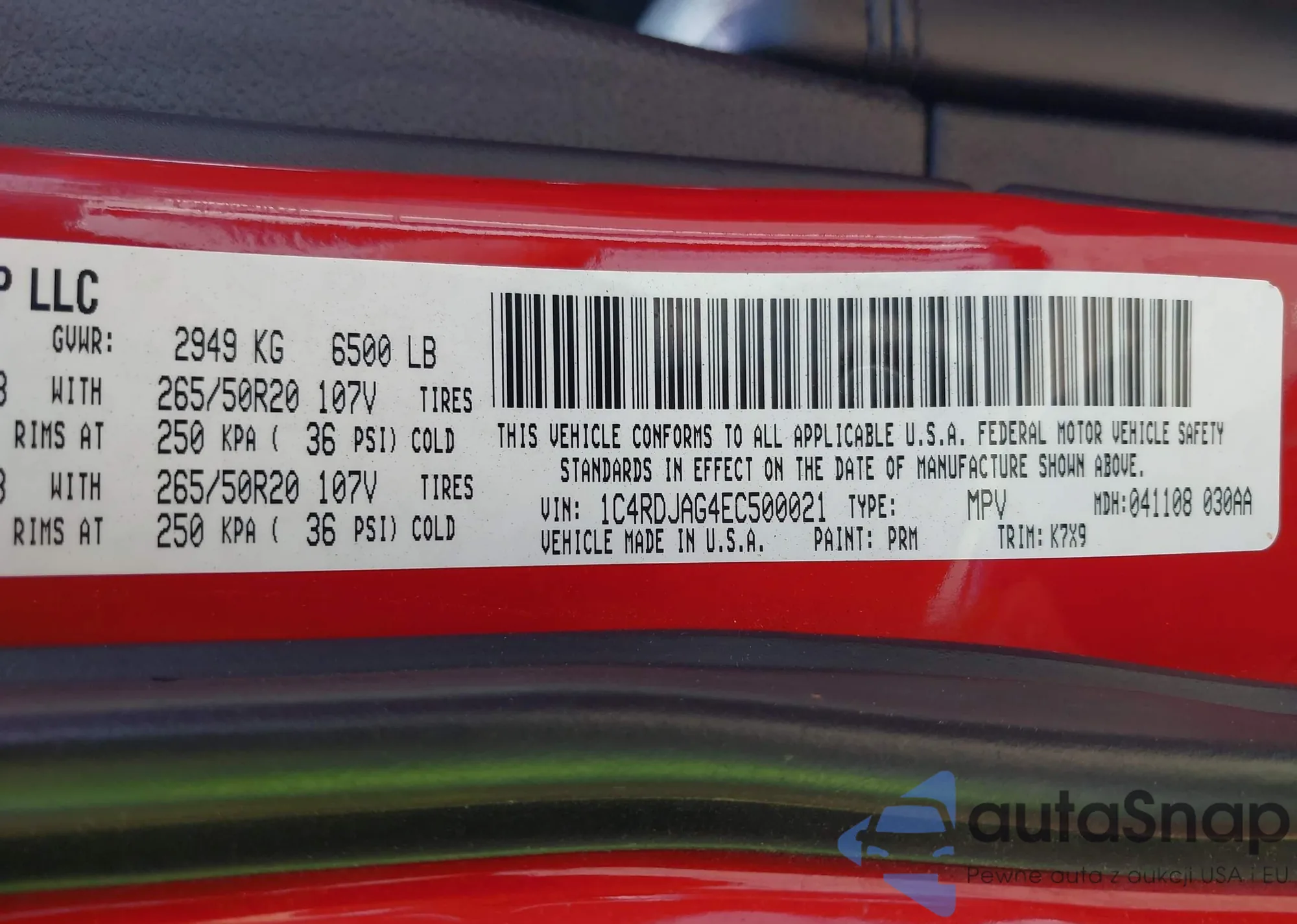 VIN: 1C4RDJAG4EC500021