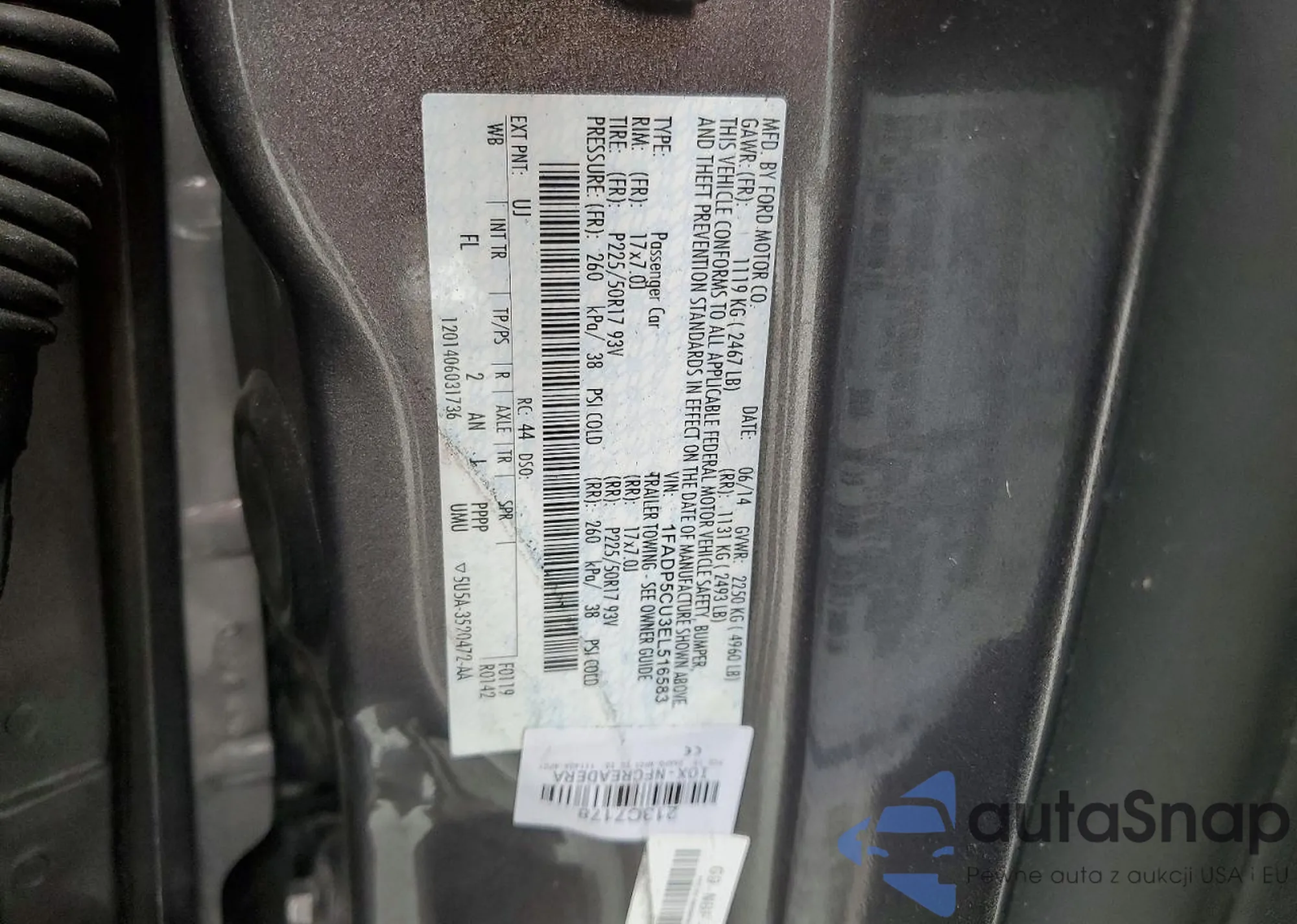 Автомобиль Ford C-MAX 2014 (VIN 1FADP5CU3EL516583) ранее не участвовал в торгах. Документы чистые, пробег соответствует или ниже среднего по рынку. Продаётся страховой компанией — рекомендуем покупку. Доставка в порт займет около 6–8 недель.