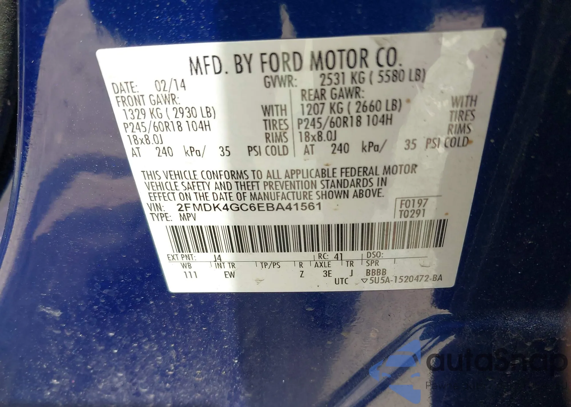 VIN: 2FMDK4GC6EBA41561