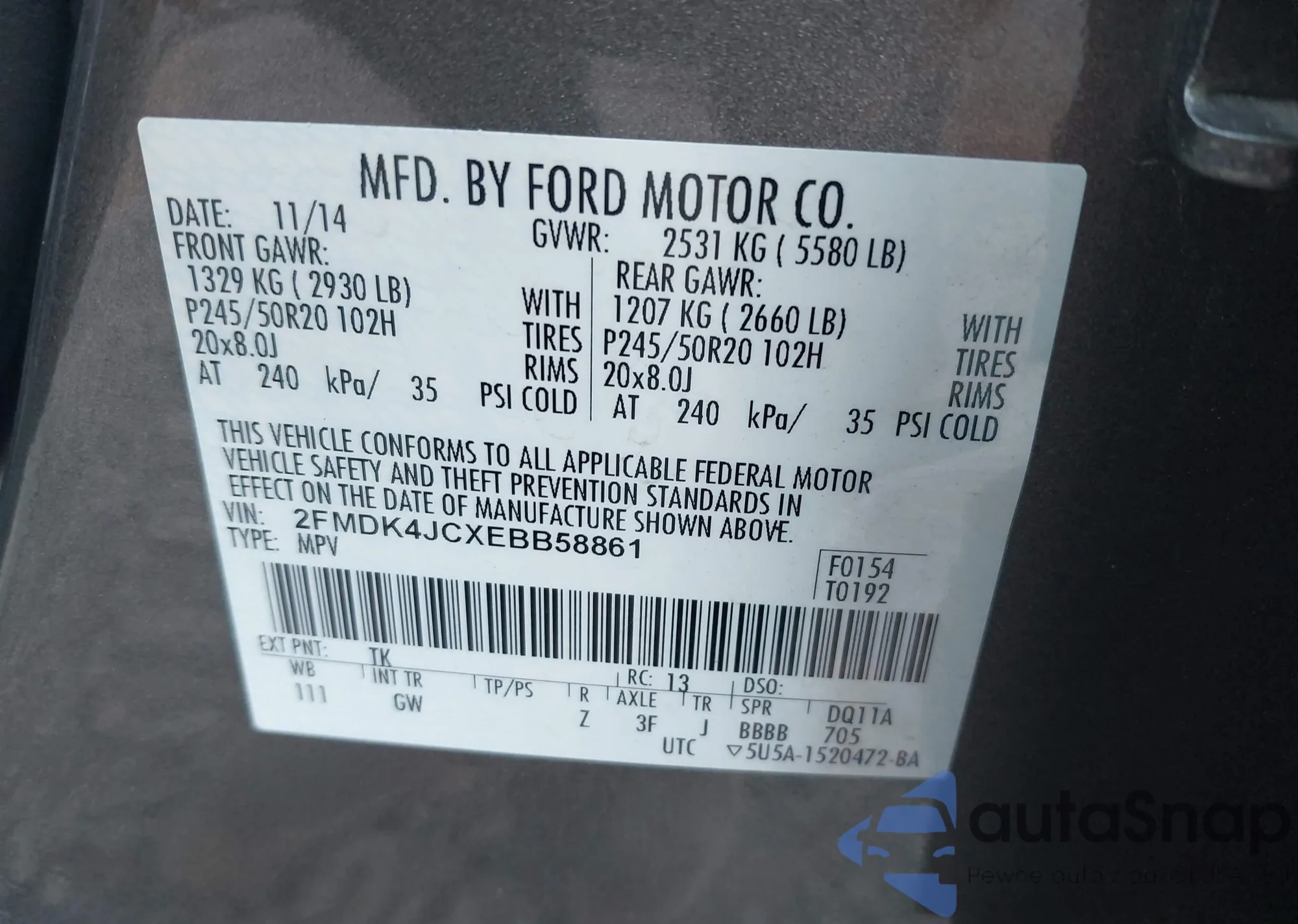 VIN: 2FMDK4JCXEBB58861
