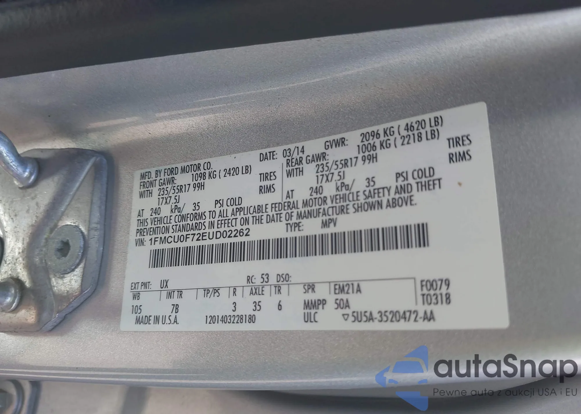 VIN: 1FMCU0F72EUD02262