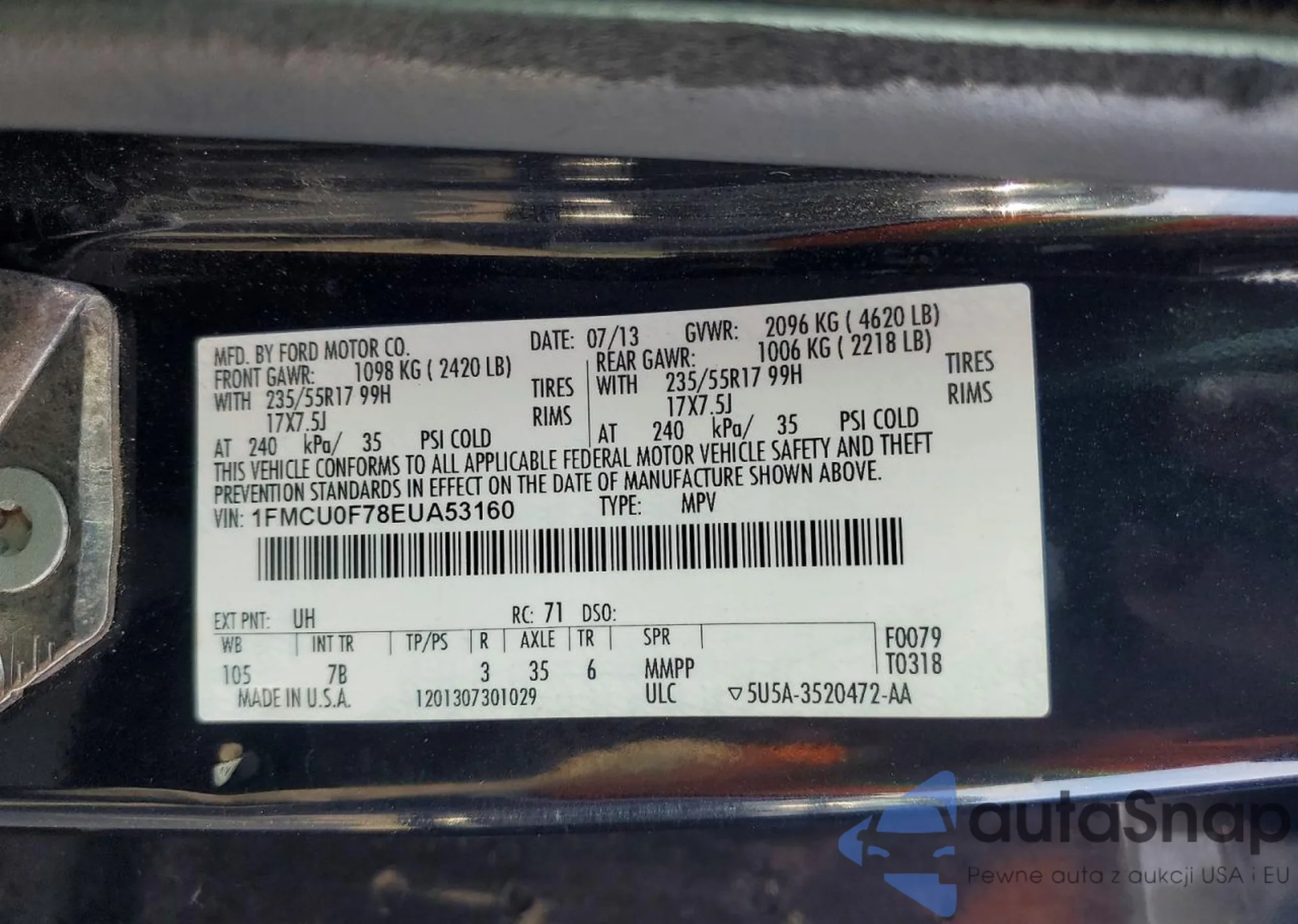 VIN: 1FMCU0F78EUA53160