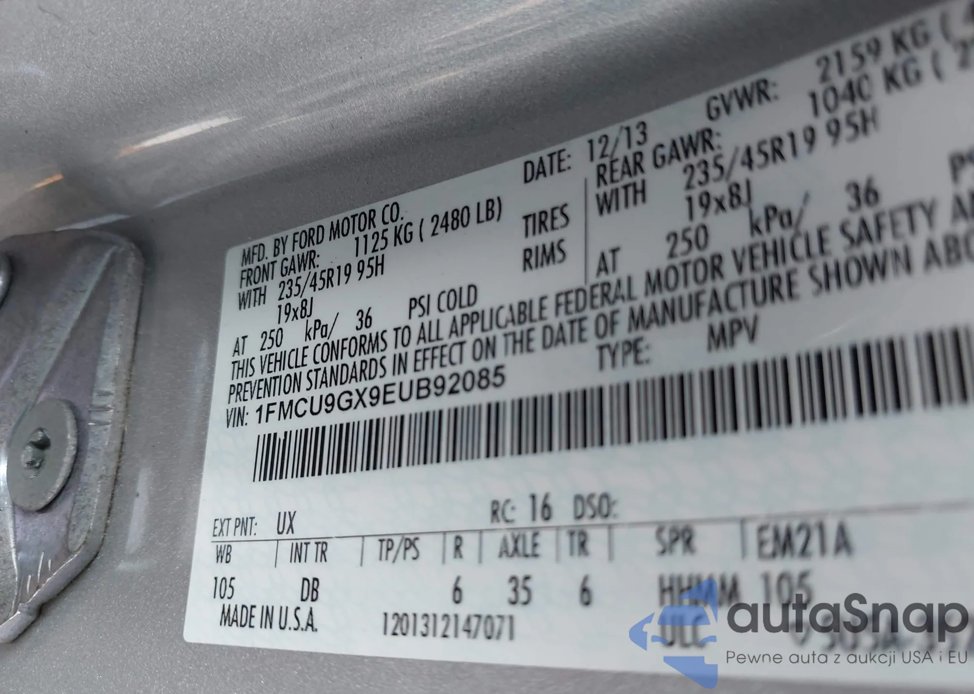 VIN: 1FMCU9GX9EUB92085