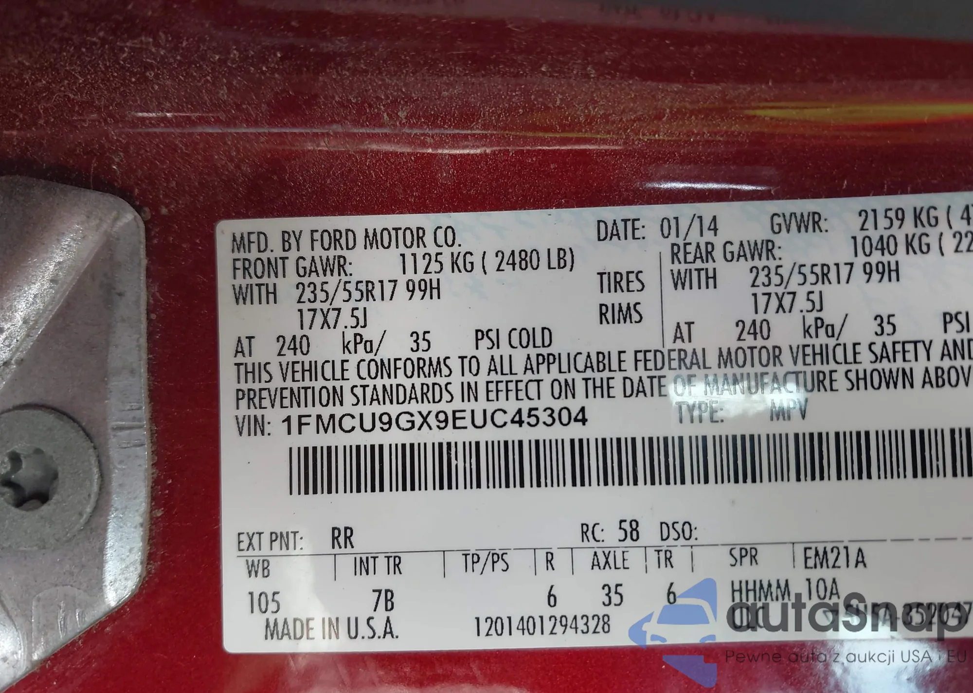 VIN: 1FMCU9GX9EUC45304