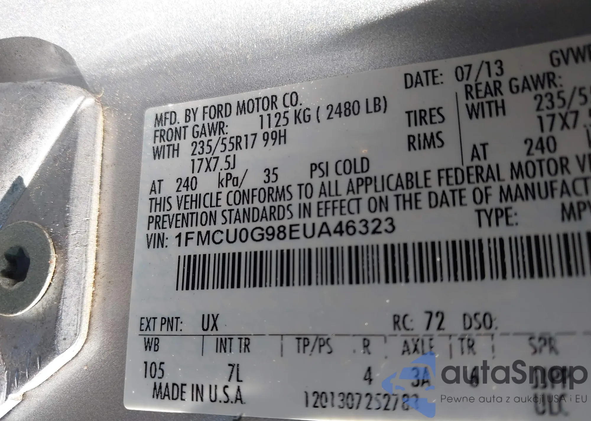VIN: 1FMCU0G98EUA46323