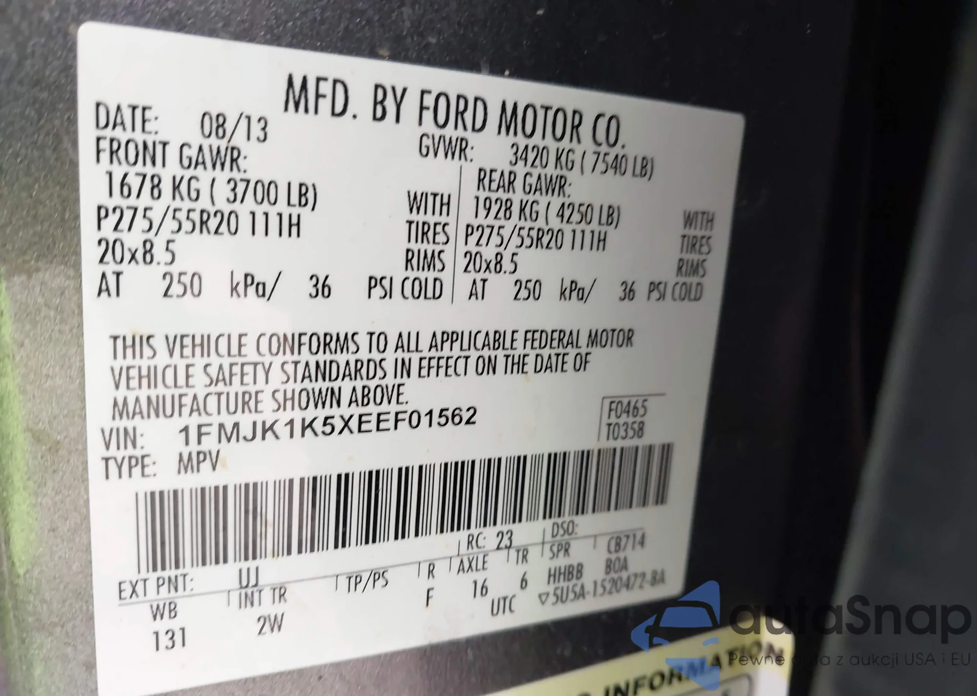 • VIN: 1FMJK1K5XEEF01562
