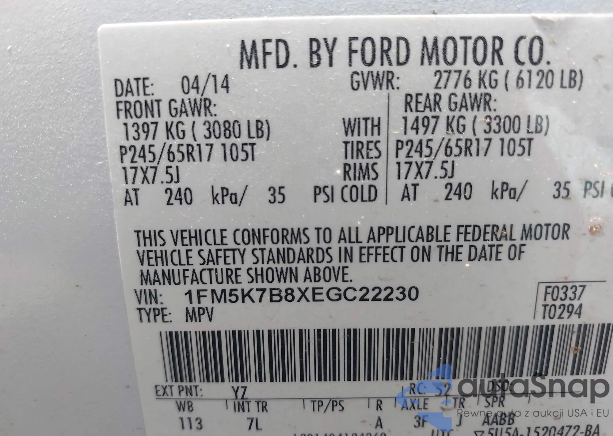 VIN: 1FM5K7B8XEGC22230