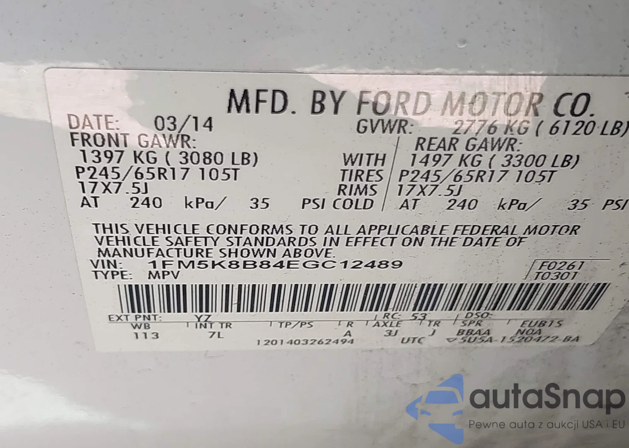 • VIN: 1FM5K8B84EGC12489