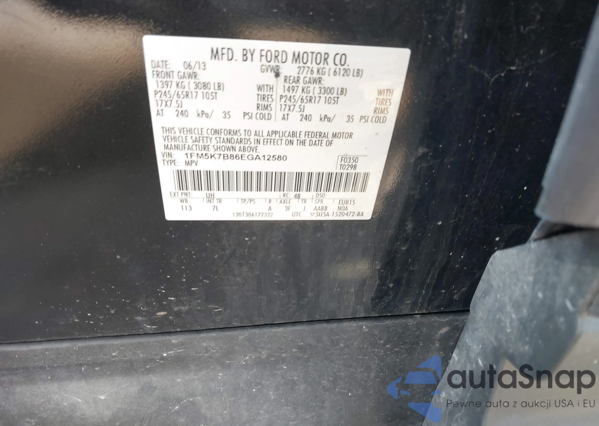 VIN: 1FM5K7B86EGA12580