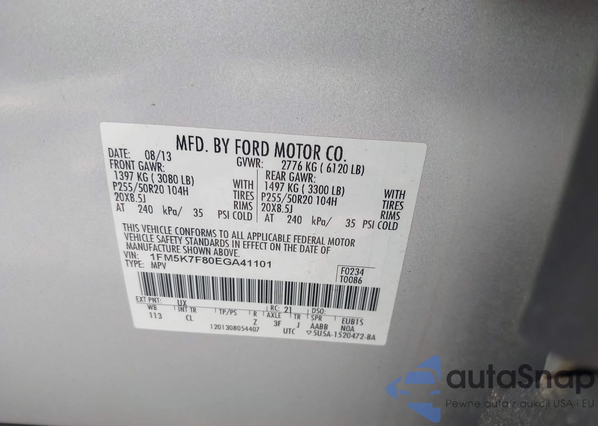 VIN: 1FM5K7F80EGA41101