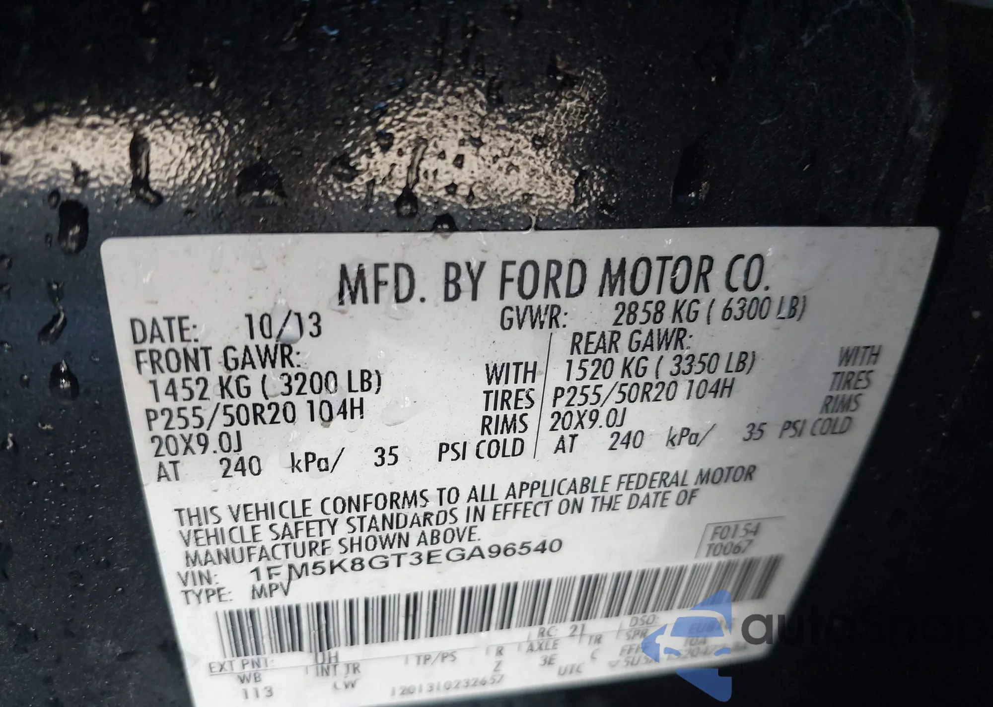 VIN: 1FM5K8GT3EGA96540