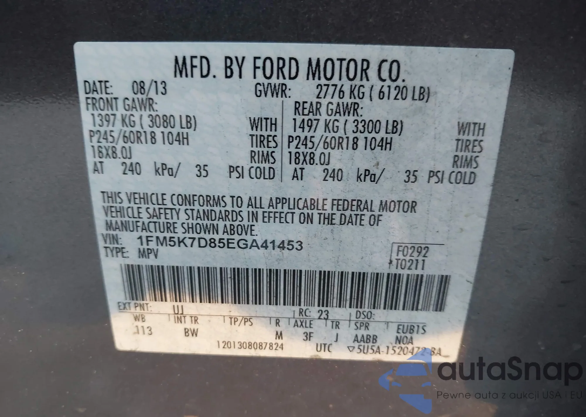 VIN: 1FM5K7D85EGA41453