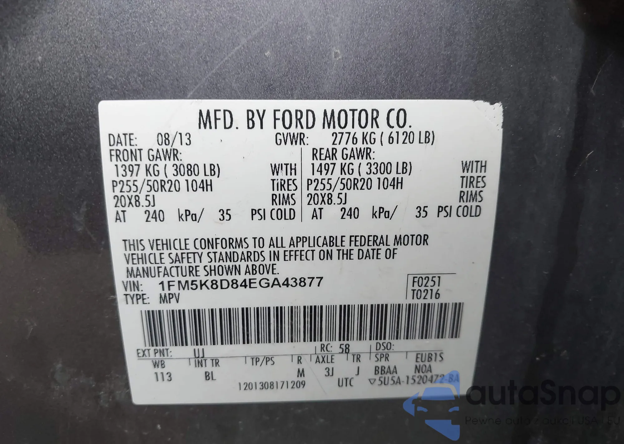 VIN: 1FM5K8D84EGA43877