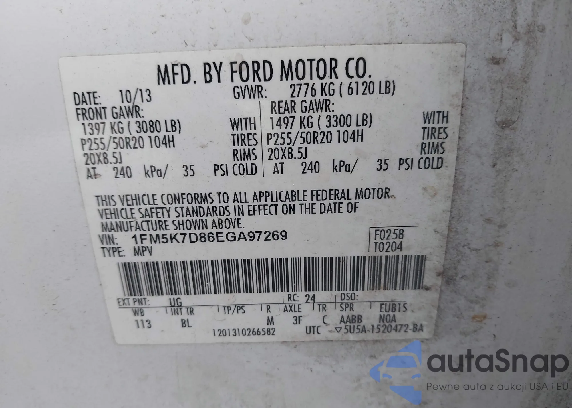 VIN: 1FM5K7D86EGA97269