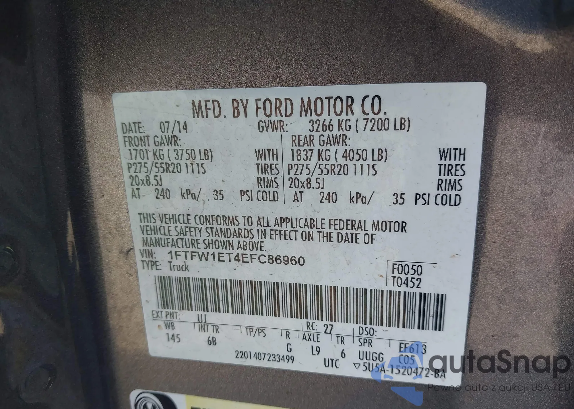 VIN: 1FTFW1ET4EFC86960