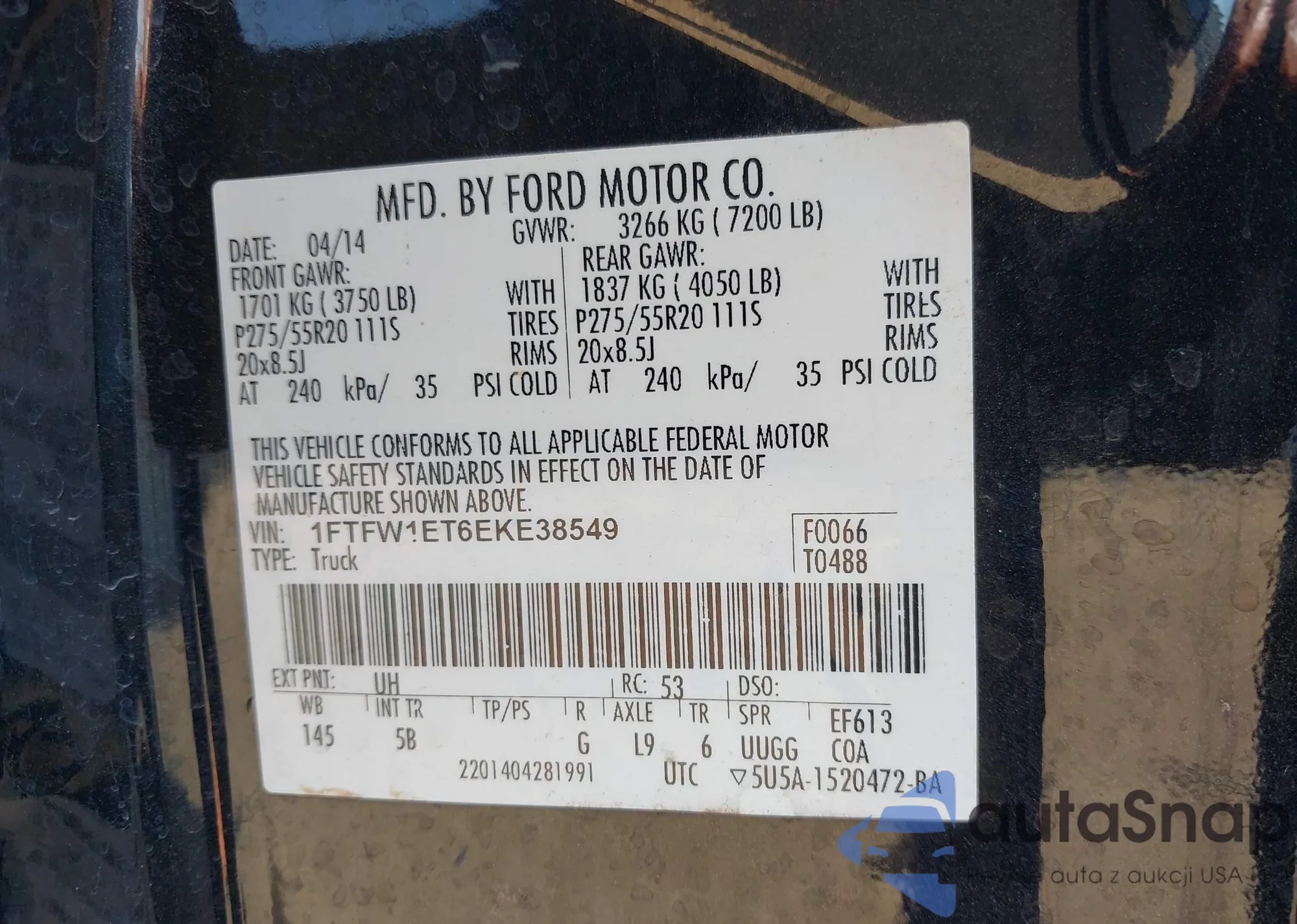 • VIN: 1FTFW1ET6EKE38549