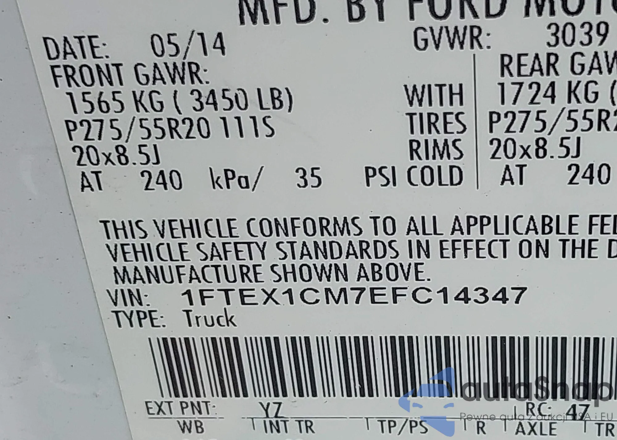 • VIN: 1FTEX1CM7EFC14347