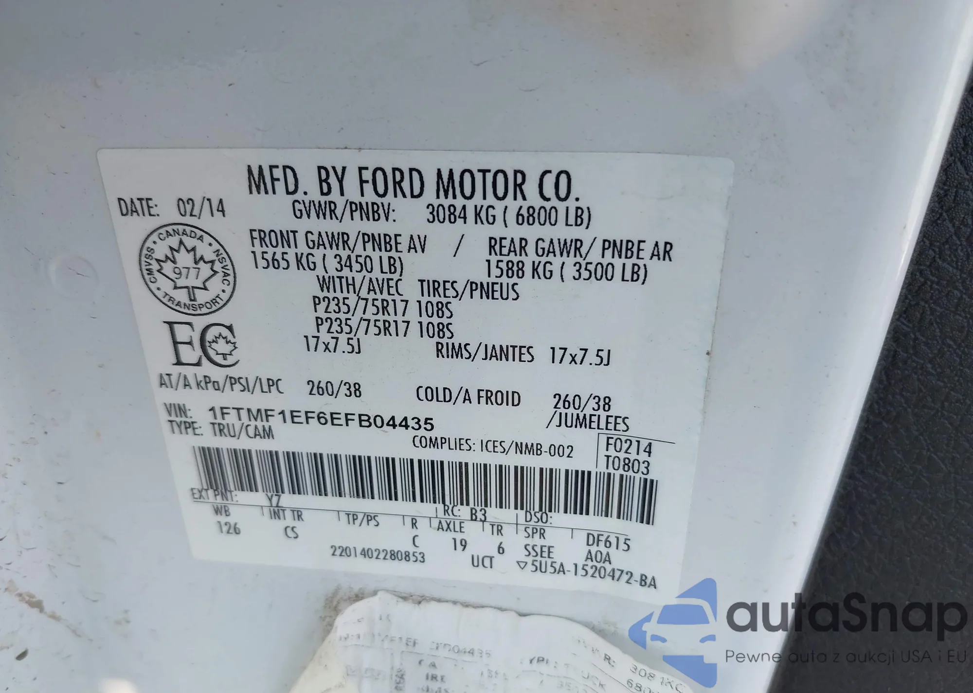 VIN: 1FTMF1EF6EFB04435