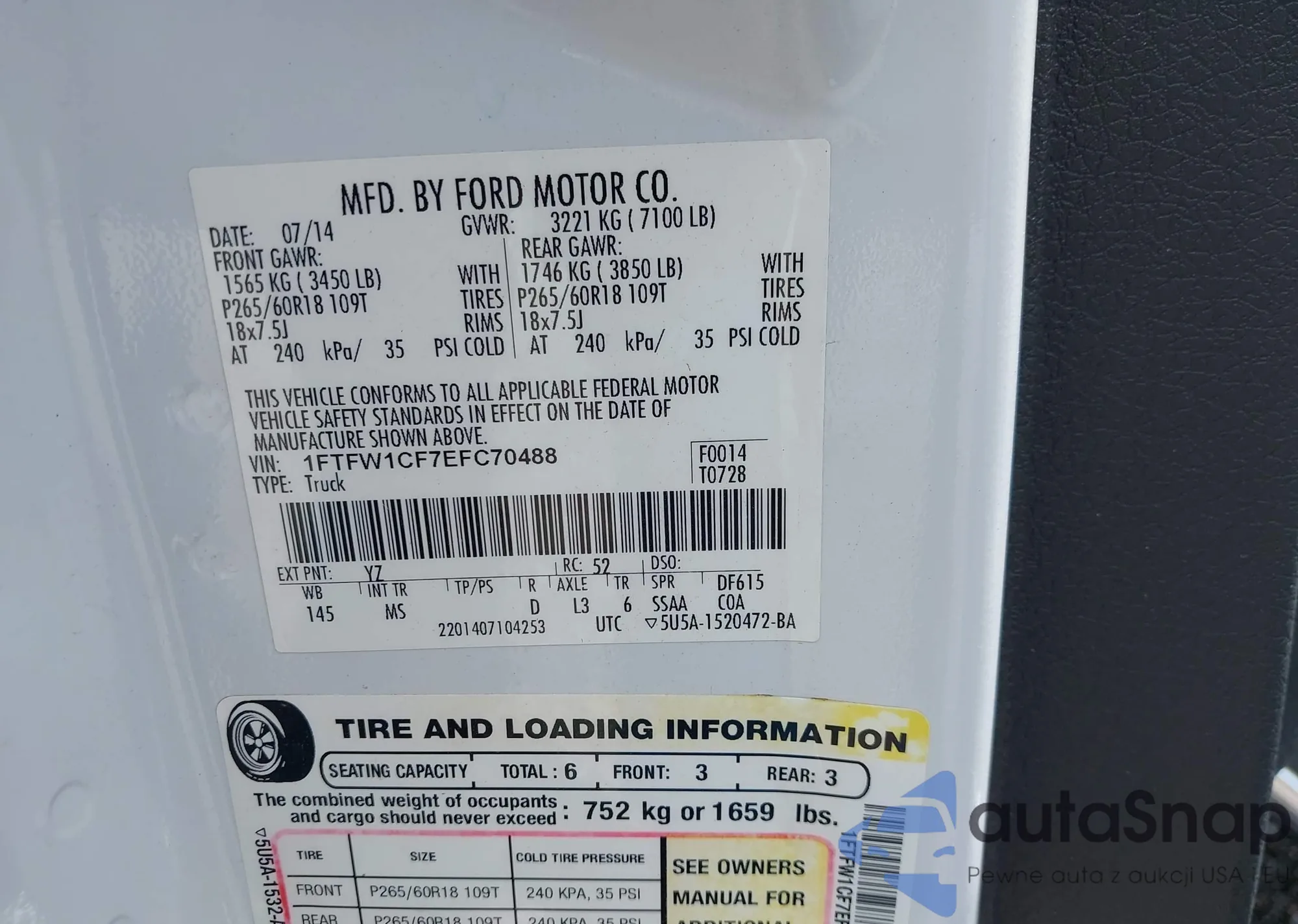 • VIN: 1FTFW1CF7EFC70488