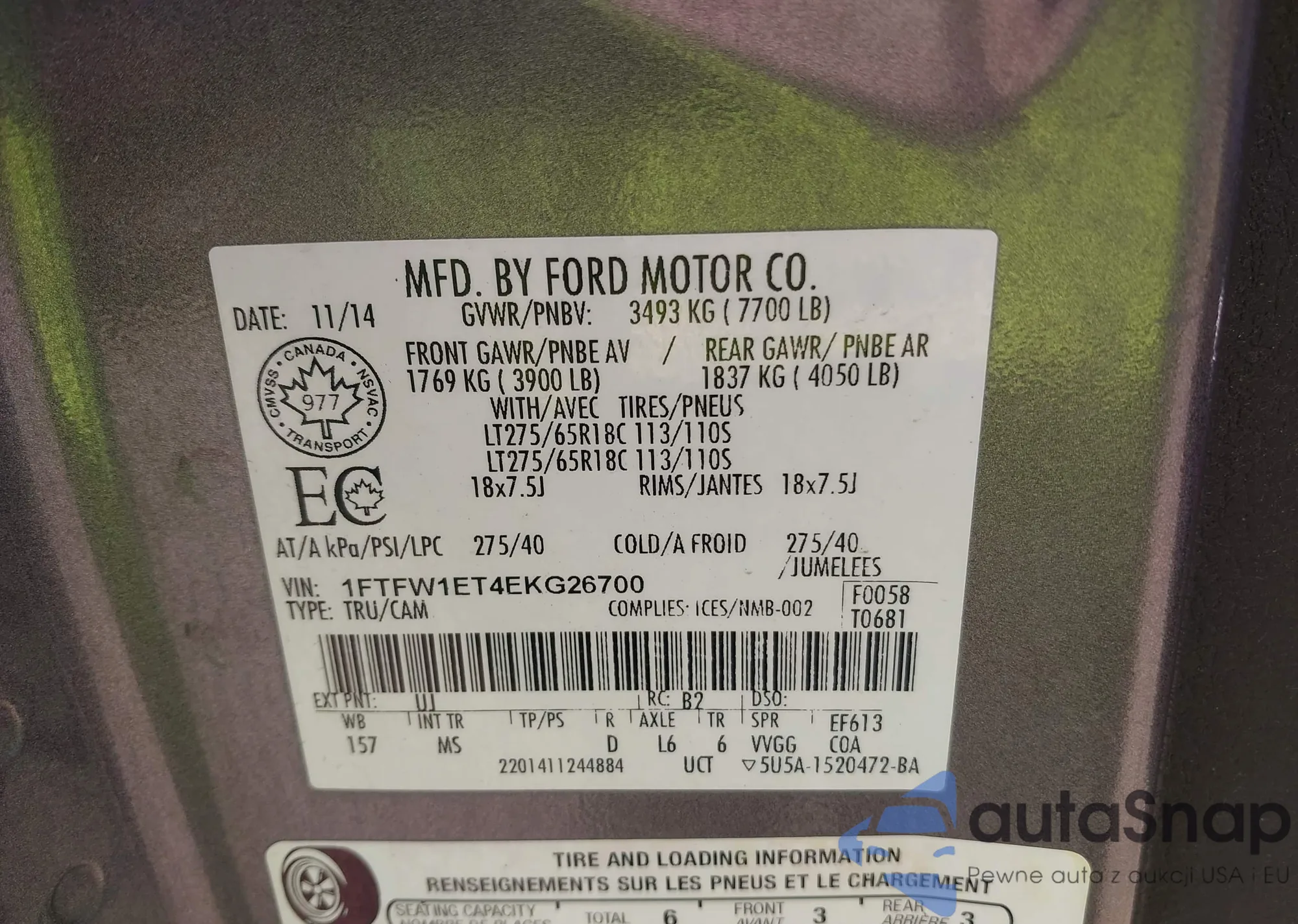 VIN: 1FTFW1ET4EKG26700