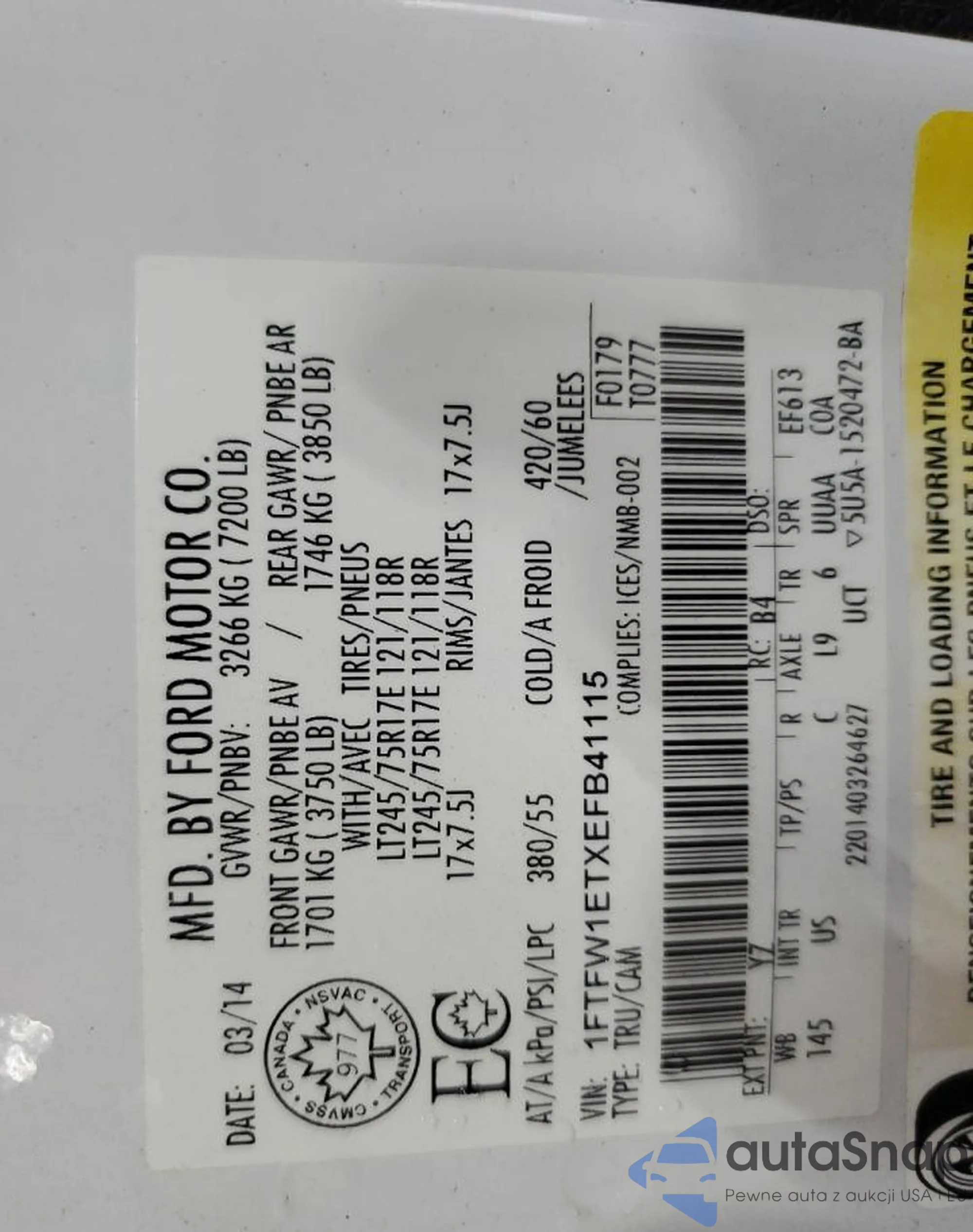 VIN: 1FTFW1ETXEFB41115