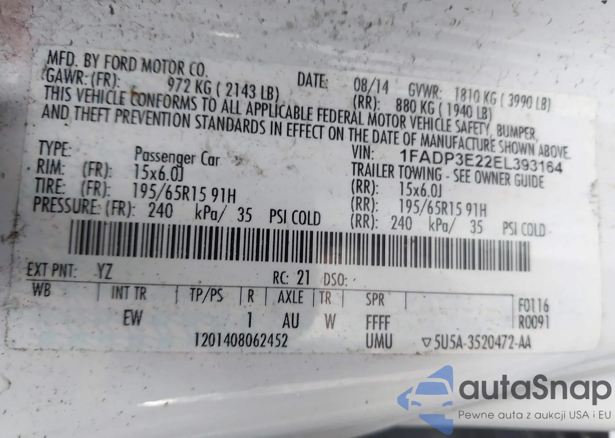 VIN: 1FADP3E22EL393164