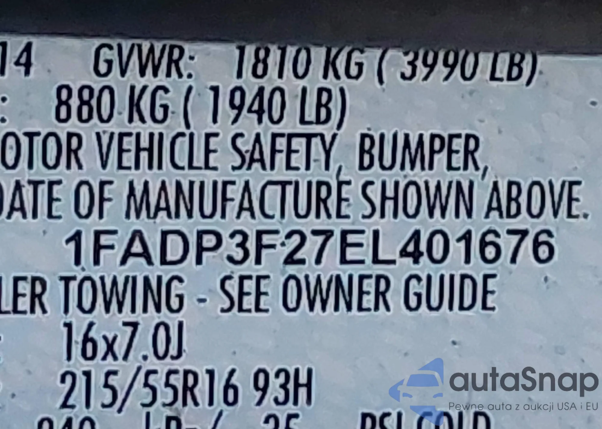 VIN: 1FADP3F27EL401676