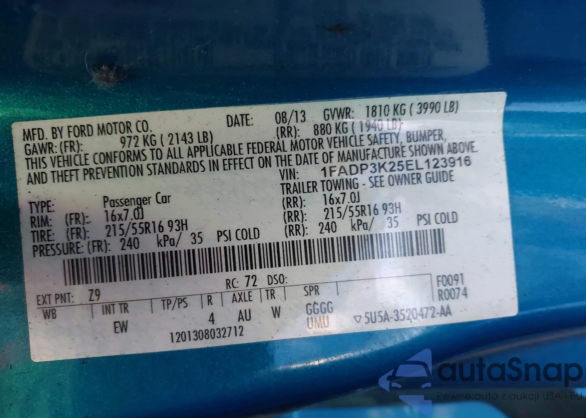 VIN: 1FADP3K25EL123916