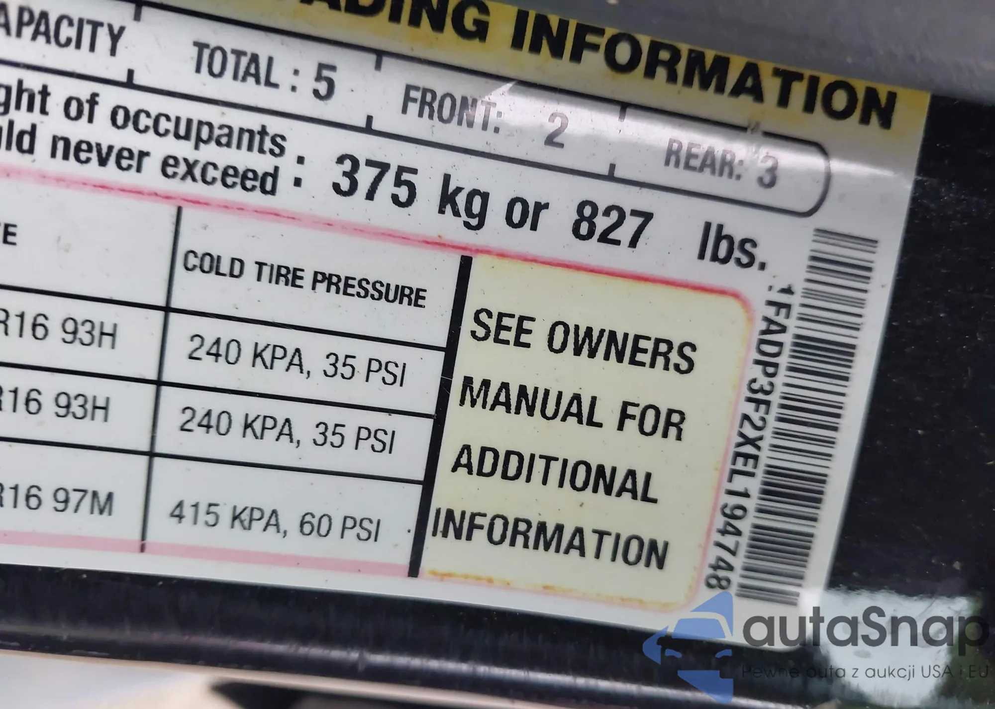 VIN: 1FADP3F2XEL194748
