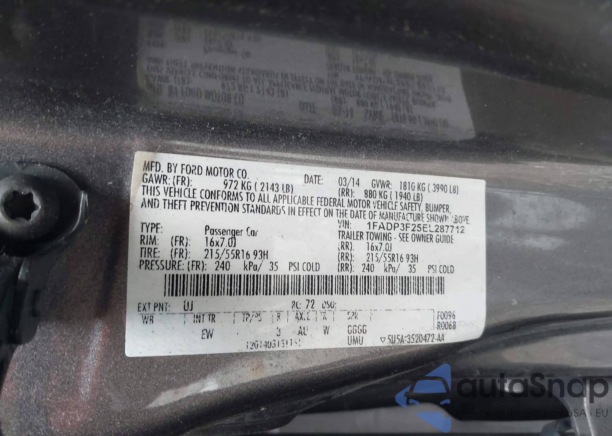 VIN: 1FADP3F25EL287712