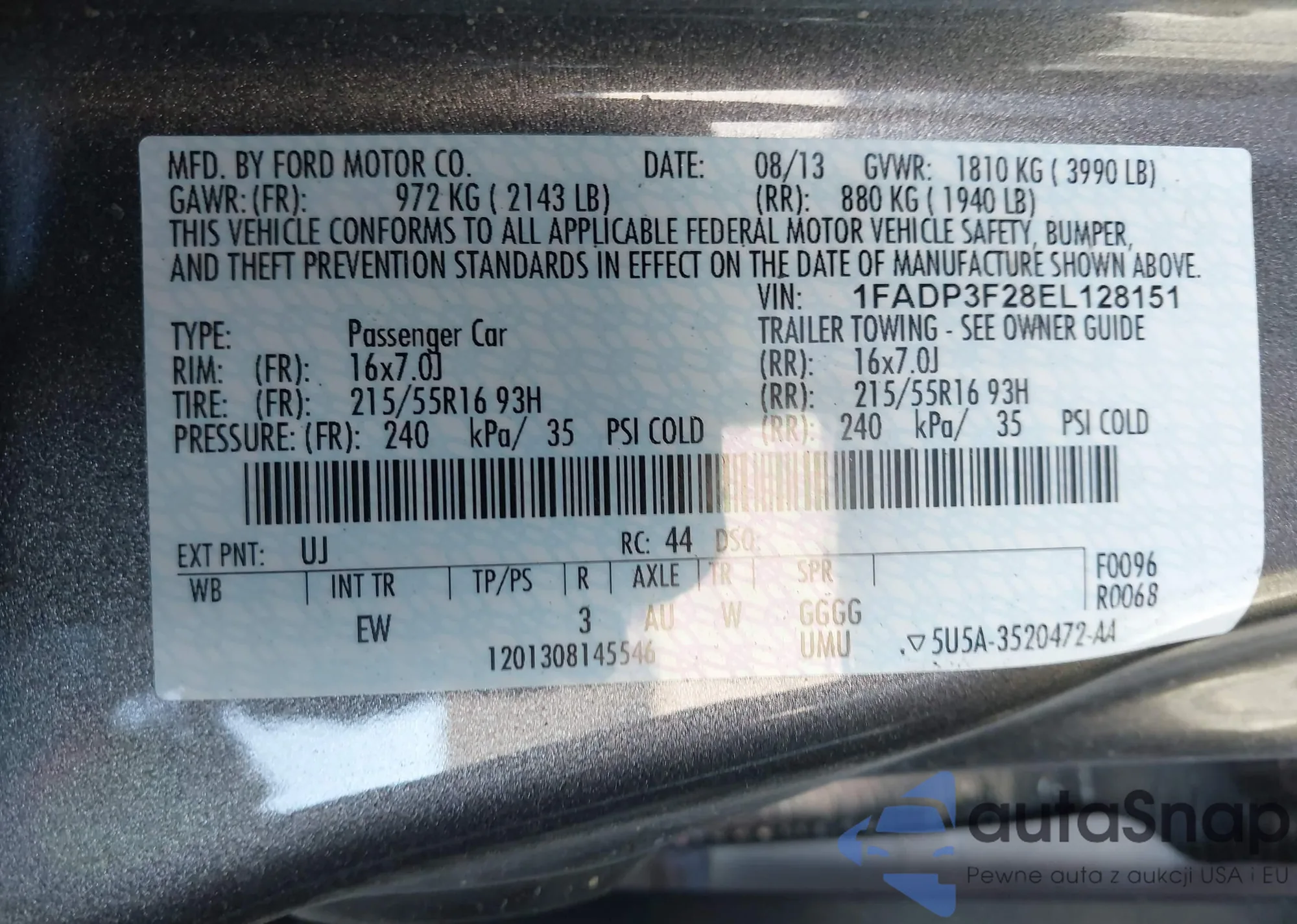 VIN: 1FADP3F28EL128151
