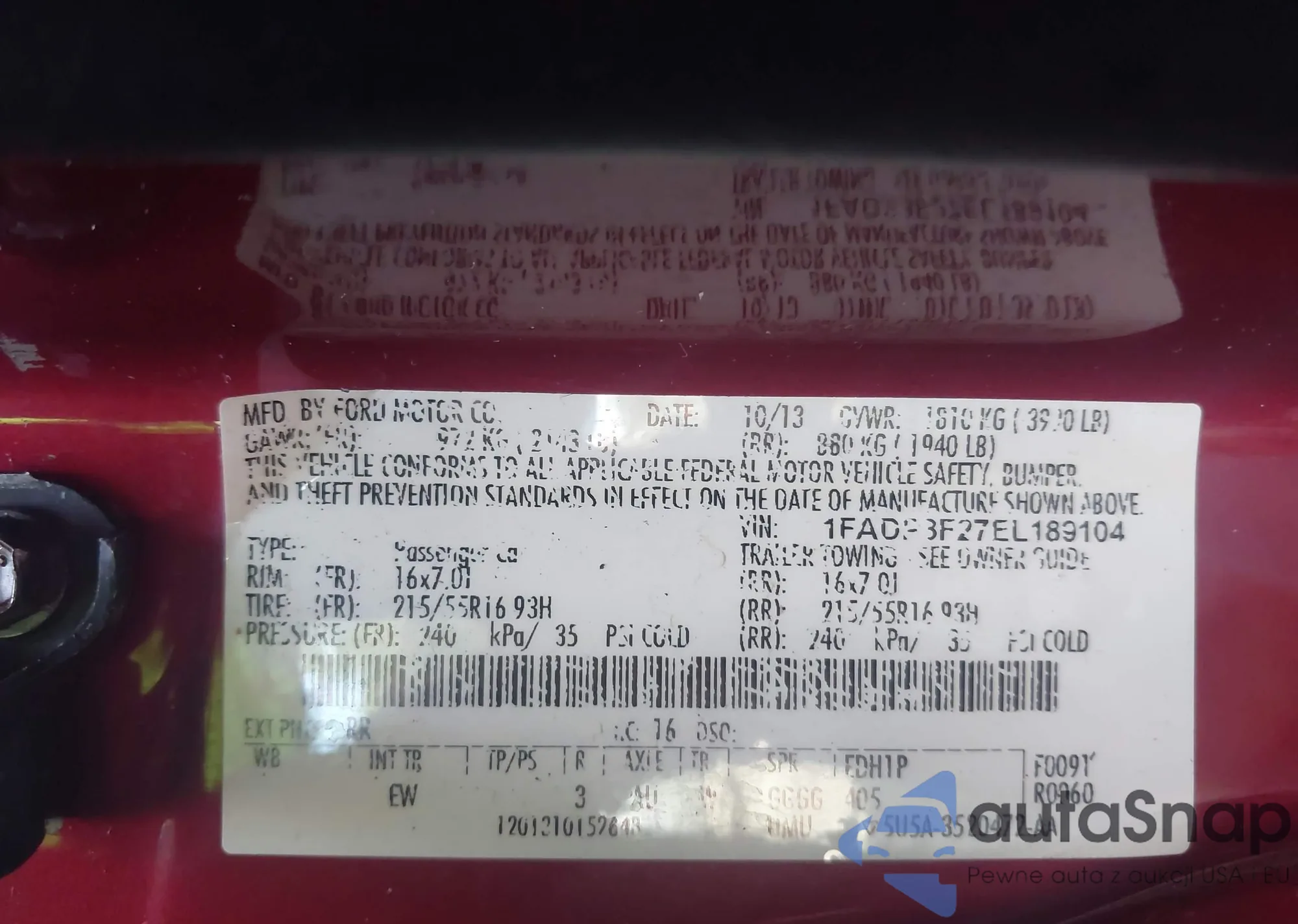 VIN: 1FADP3F27EL189104