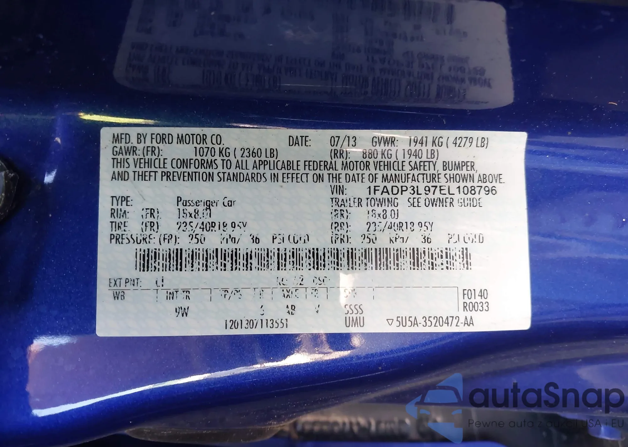 VIN: 1FADP3L97EL108796