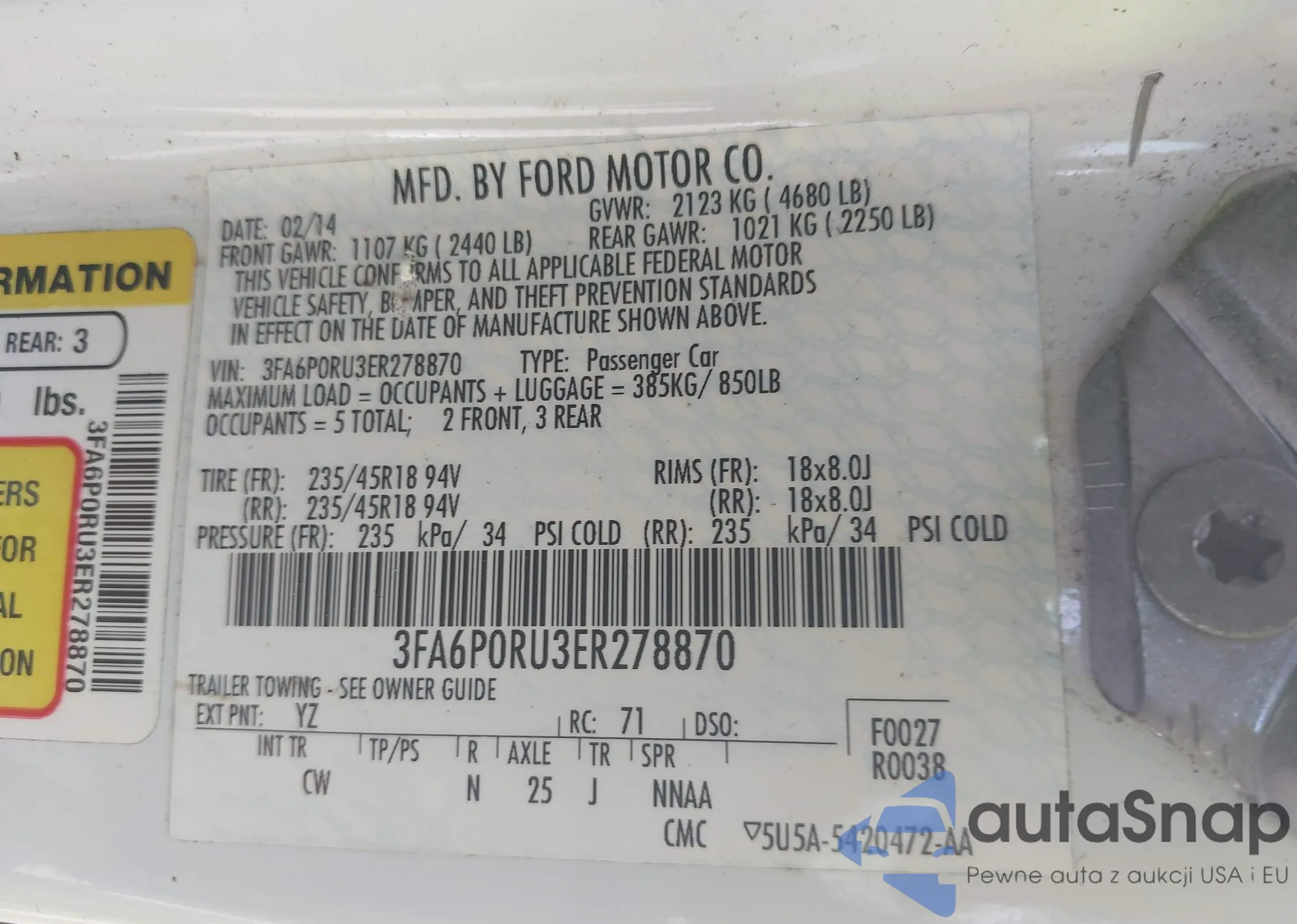 VIN: 3FA6P0RU3ER278870
