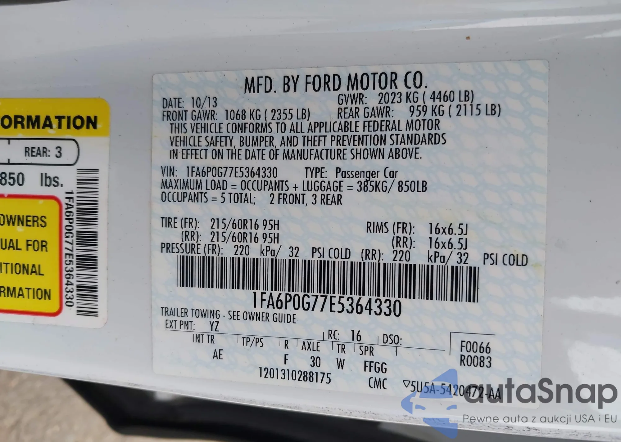 VIN: 1FA6P0G77E5364330