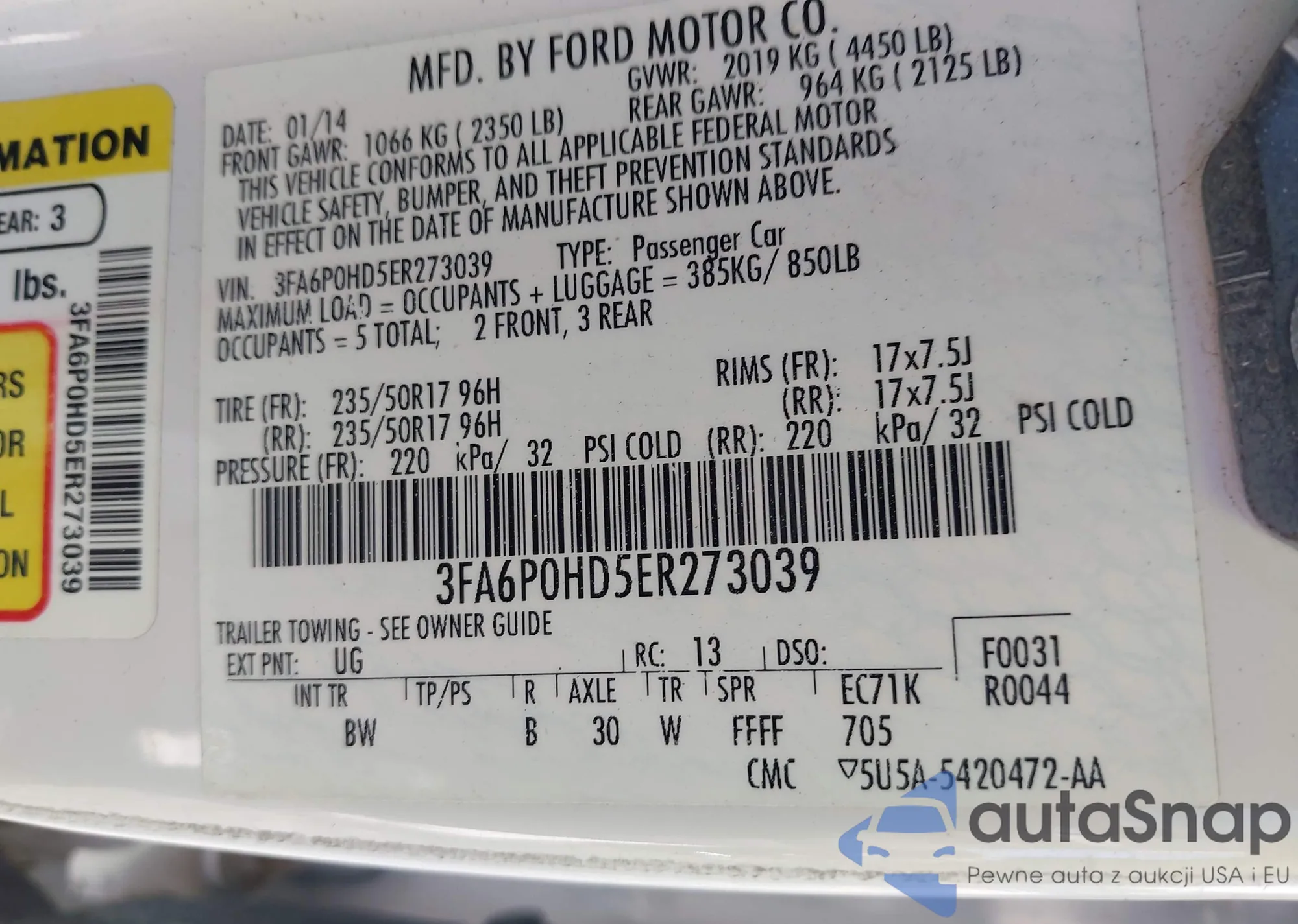 VIN: 3FA6P0HD5ER273039
