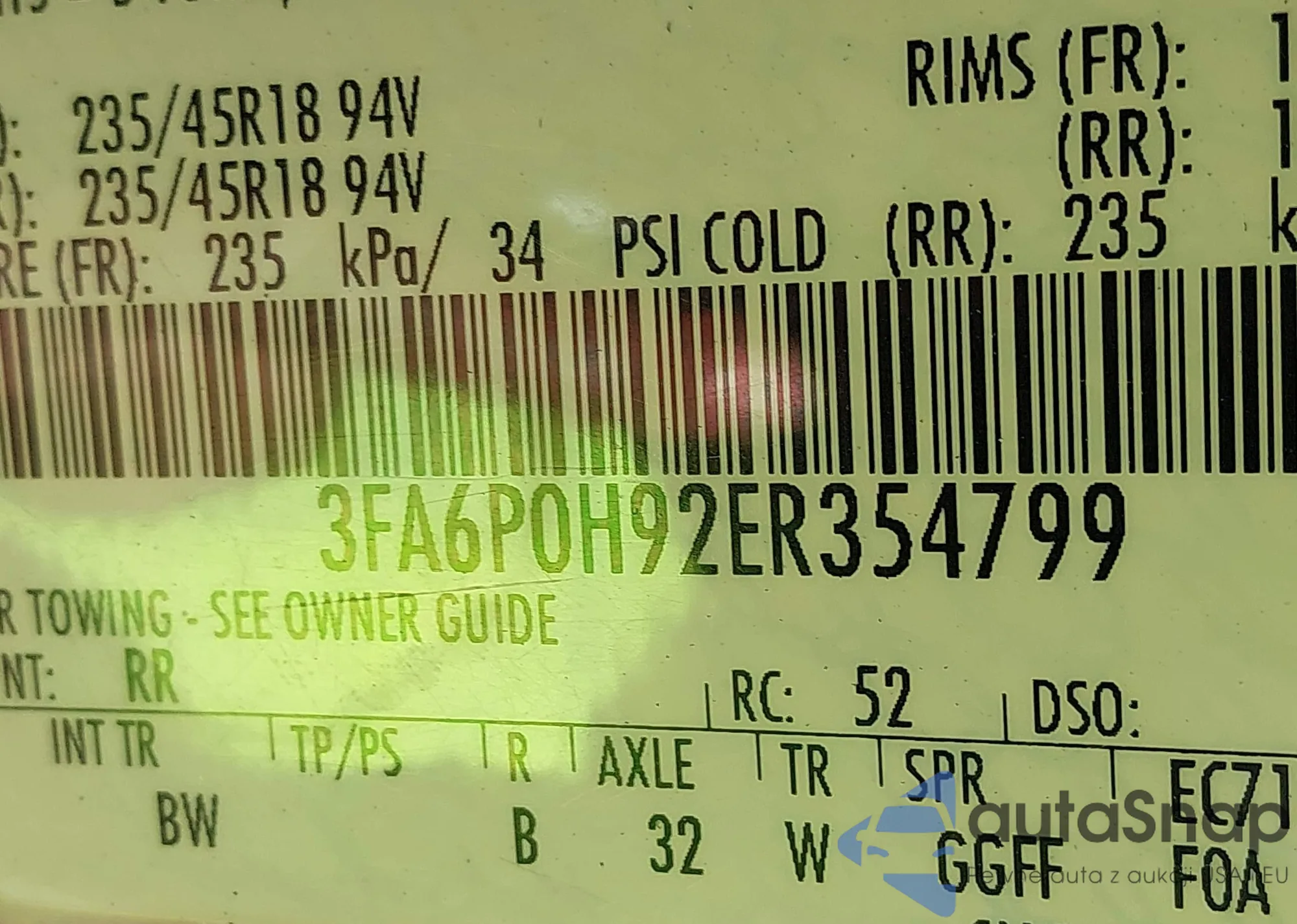 • VIN: 3FA6P0H92ER354799