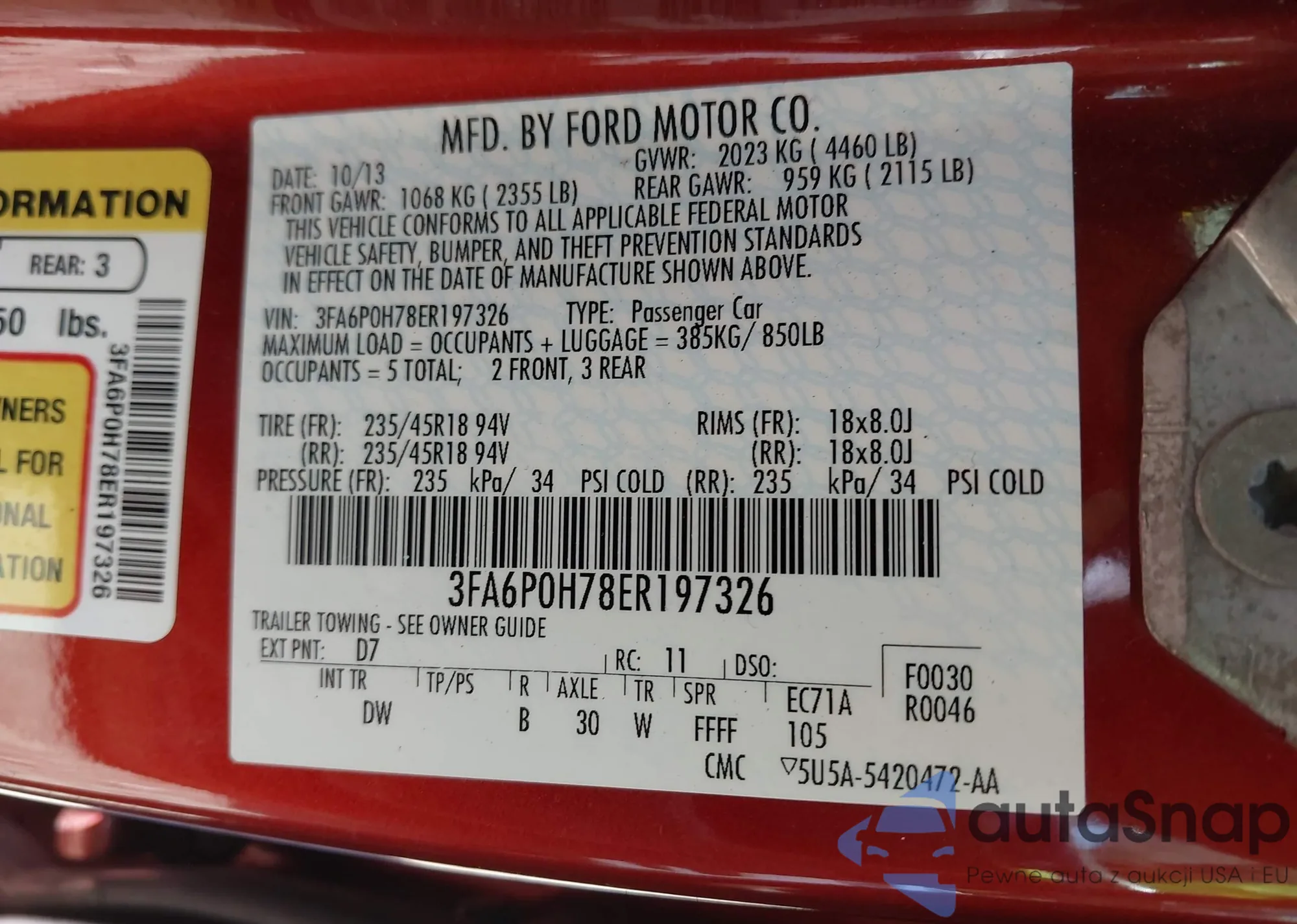 VIN: 3FA6P0H78ER197326
