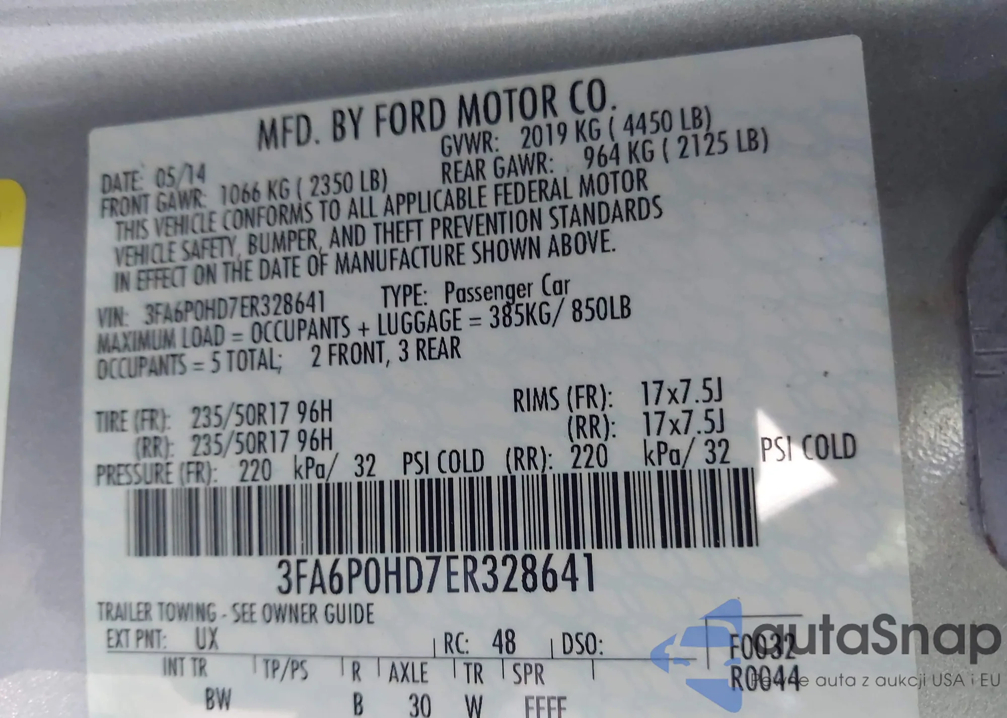 VIN: 3FA6P0HD7ER328641