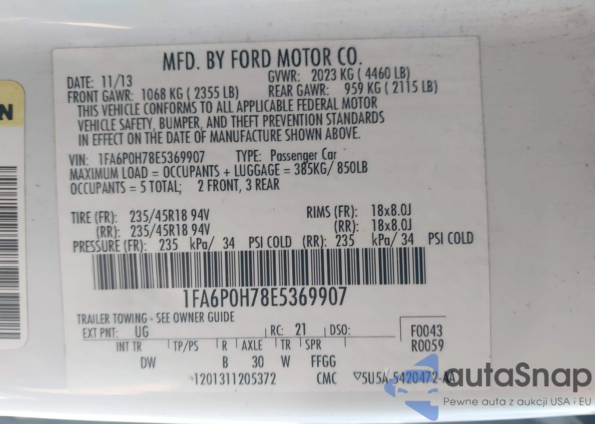 VIN: 1FA6P0H78E5369907