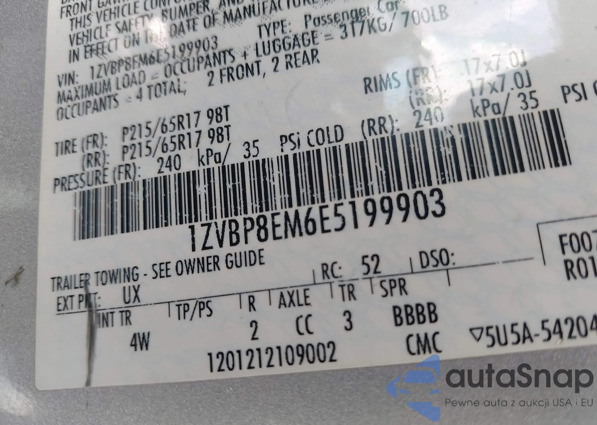 VIN: 1ZVBP8EM6E5199903