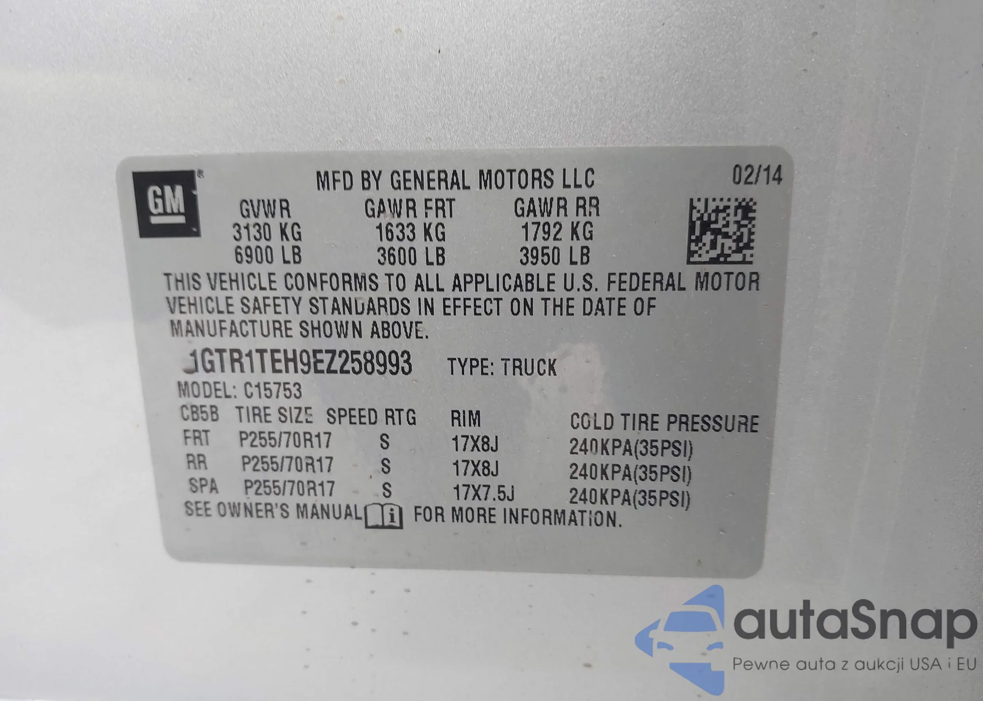 Автомобиль GMC Sierra 2014 (VIN 1GTR1TEH9EZ258993) ранее не участвовал в торгах. Документы чистые, пробег соответствует или ниже среднего по рынку. Продаётся страховой компанией — рекомендуем покупку. Доставка в порт займет около 6–8 недель.